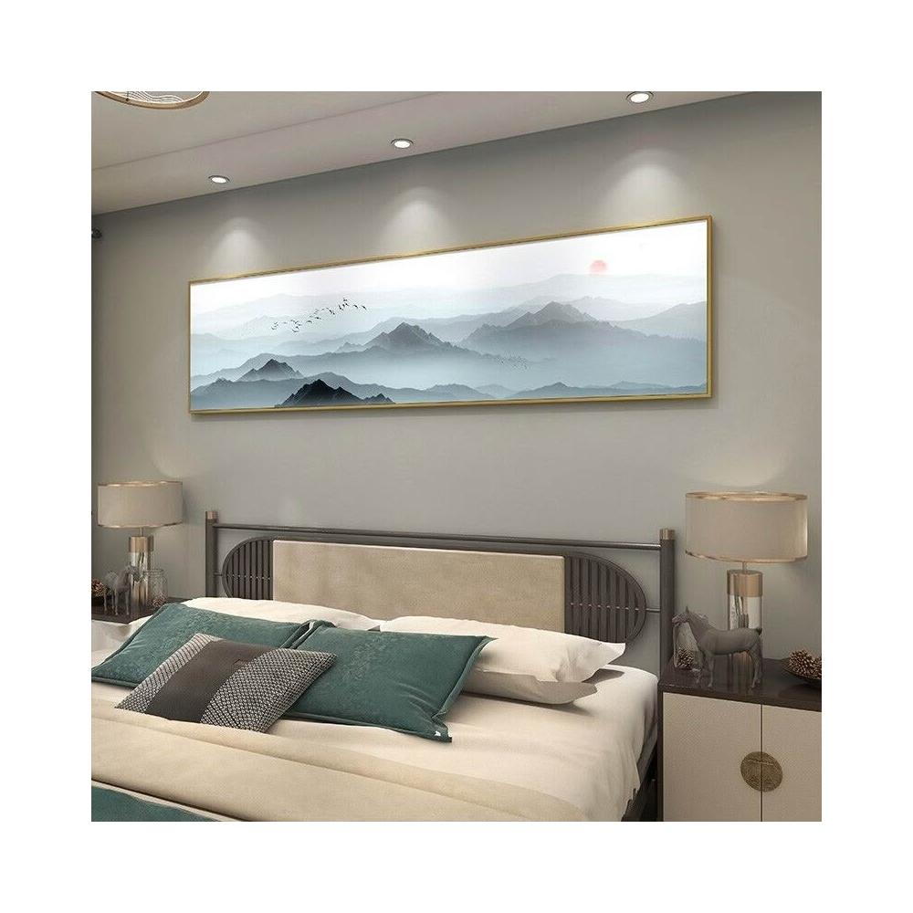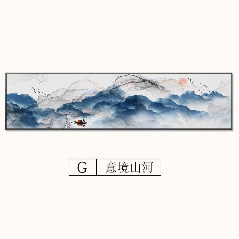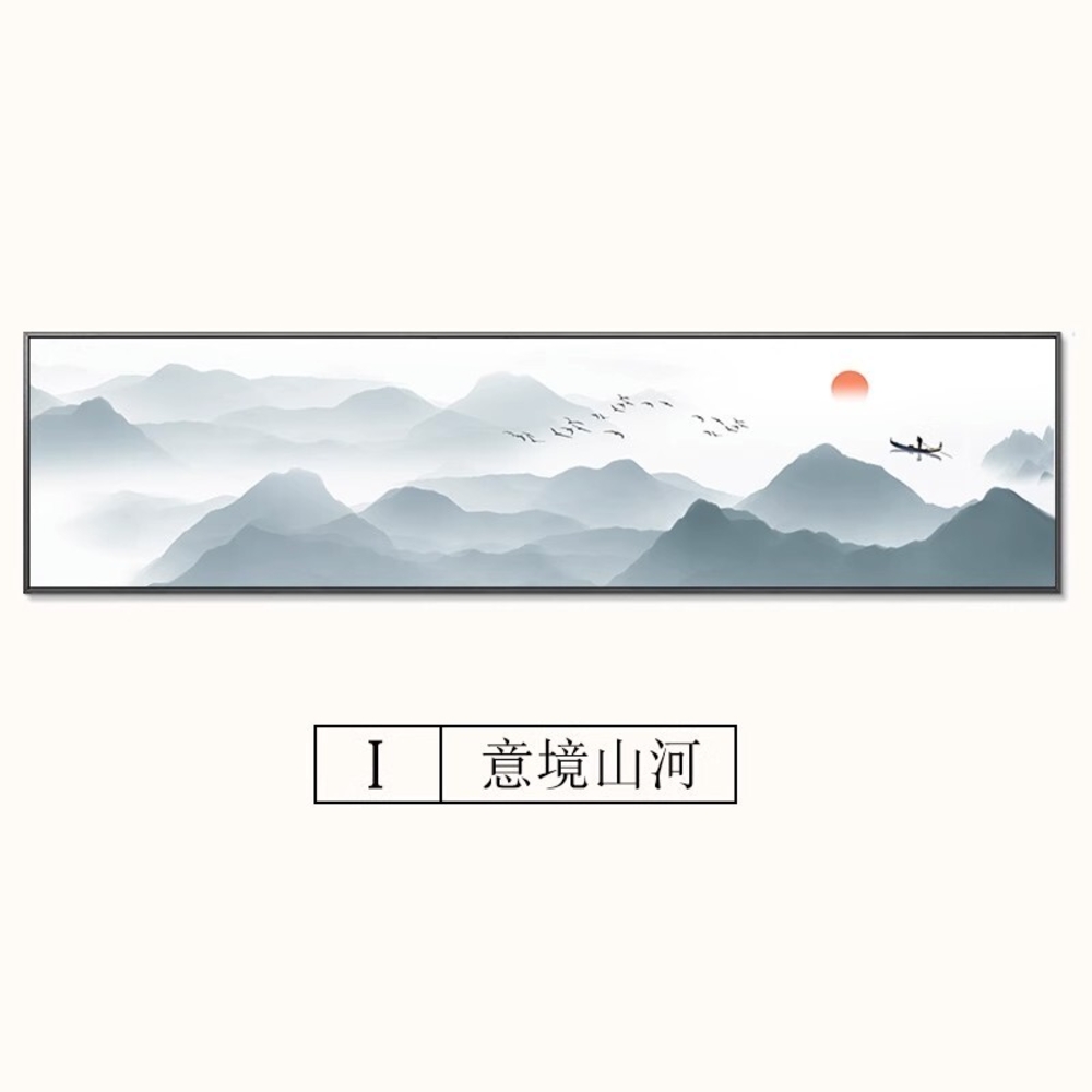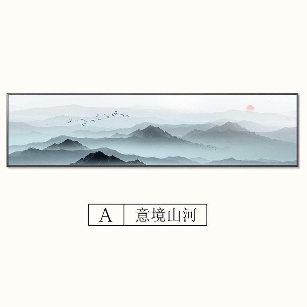 中式臥室床頭水墨裝飾畫 新中式禪意書房客廳掛畫 酒店客房壁畫 橫式山水風景畫