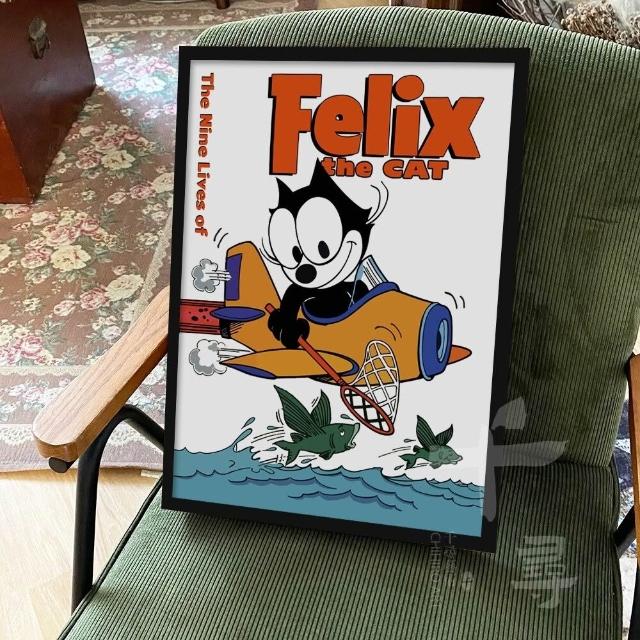 復古卡通漫畫菲力貓 felix貓 懷舊床頭臥室掛畫 美式壁畫 客廳背景墻裝飾畫