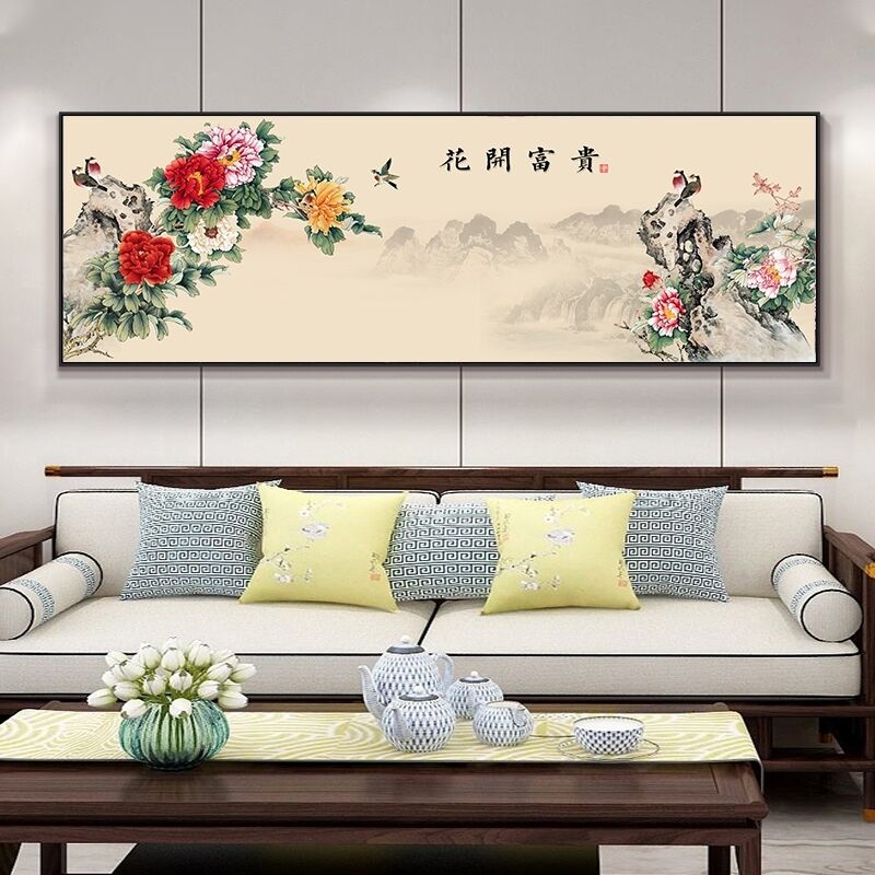 牡丹掛畫 花開富貴裝飾畫 新中式花鳥畫 沙發背景墻 臥室床頭壁畫 招財風水畫 家和藝術畫