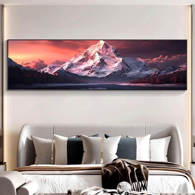 日照金山裝飾畫 客廳沙髮背景掛畫 大氣背有靠山圖風景臥室壁畫
