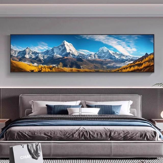 日照金山裝飾畫 客廳沙髮背景掛畫 大氣背有靠山圖風景臥室壁畫
