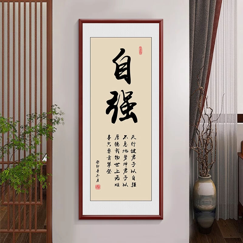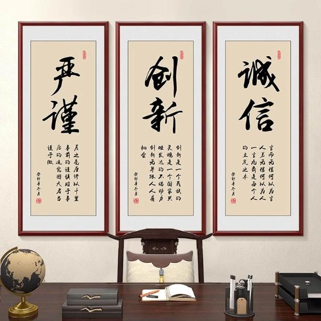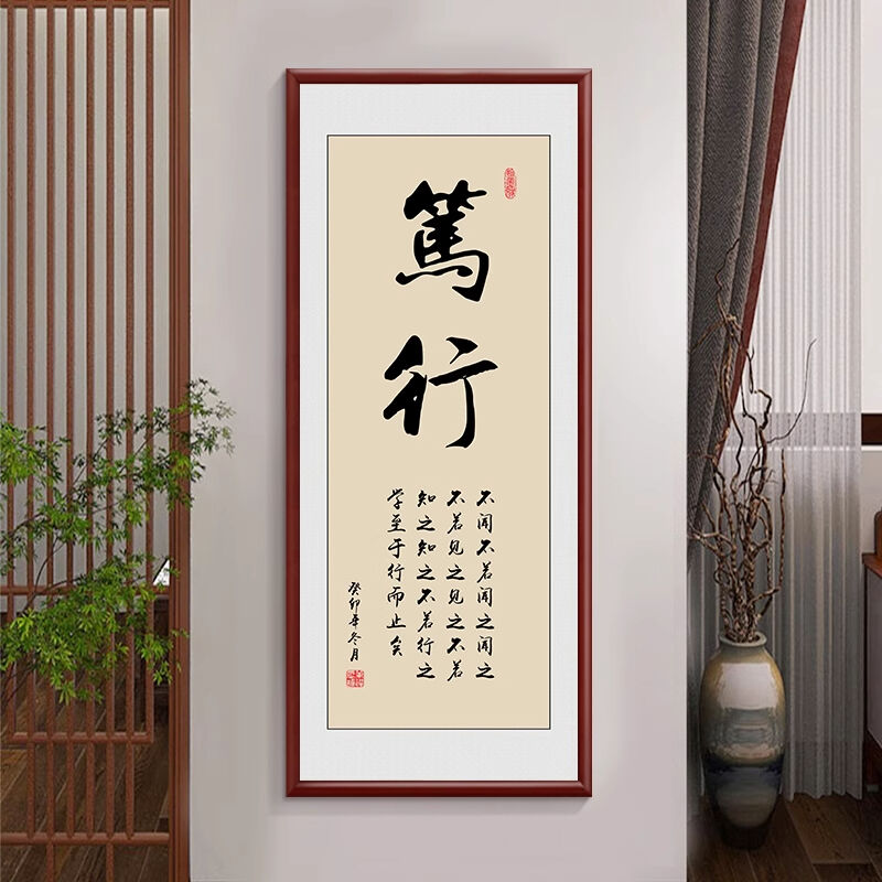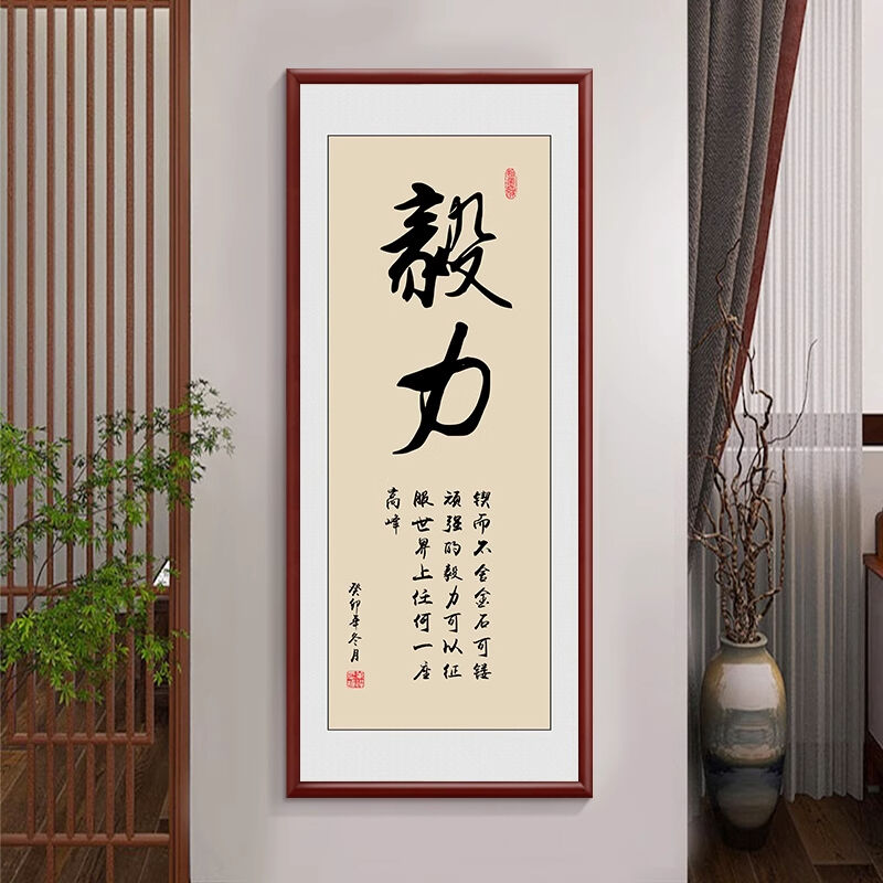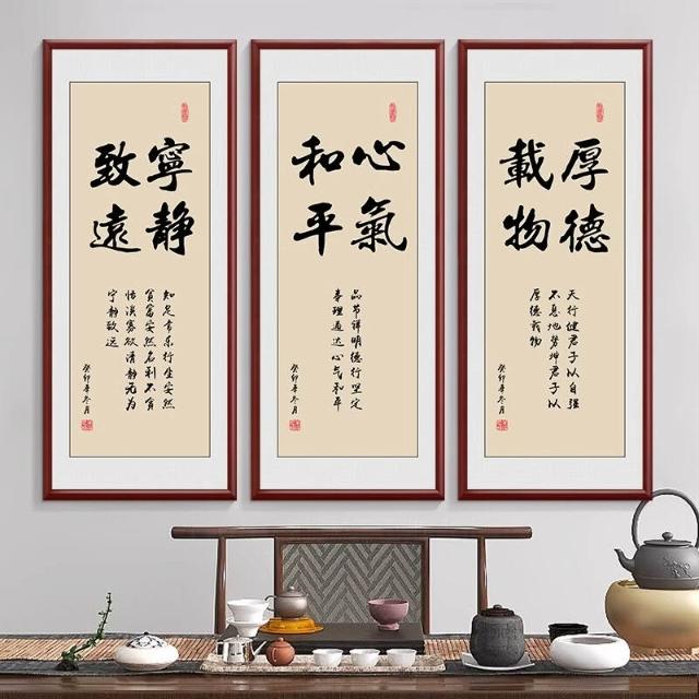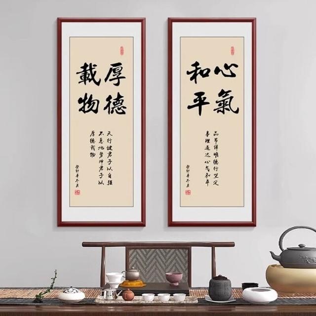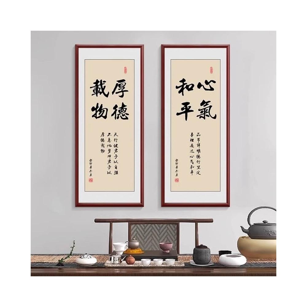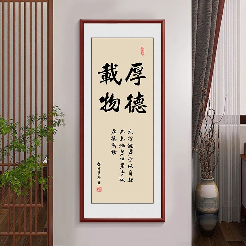 新中式厚德載物茶室公司掛畫 老闆背景牆裝飾畫 辦公室豎版書法字畫