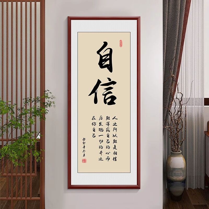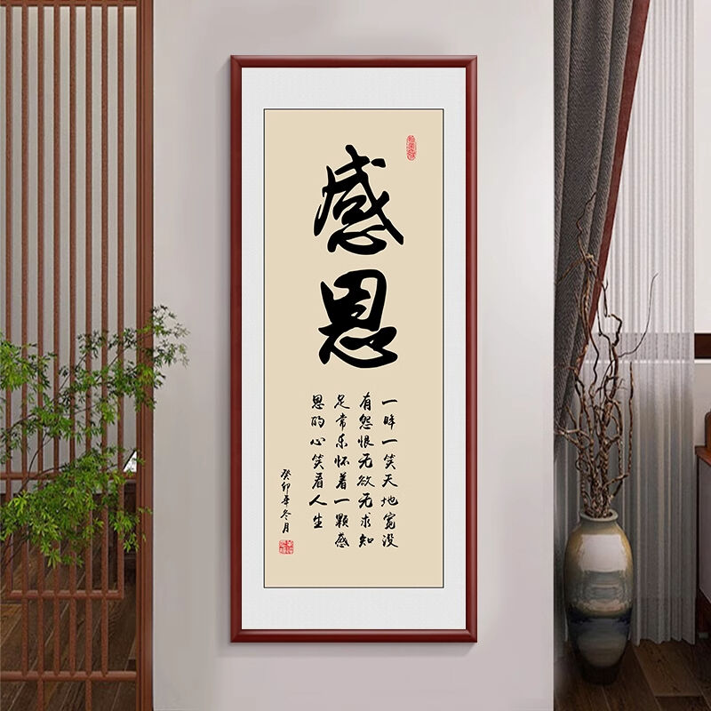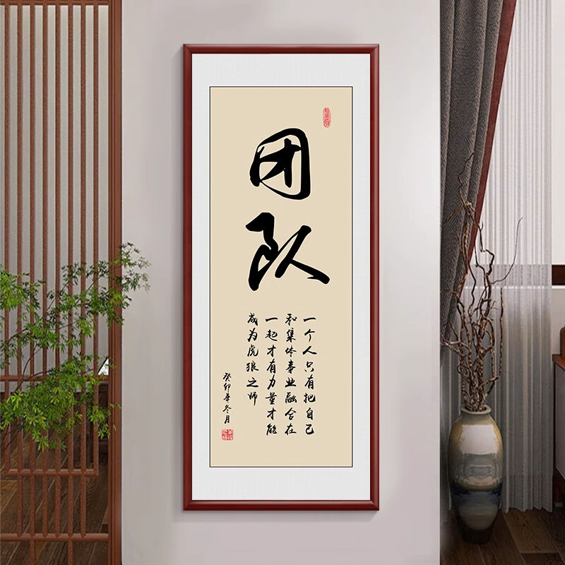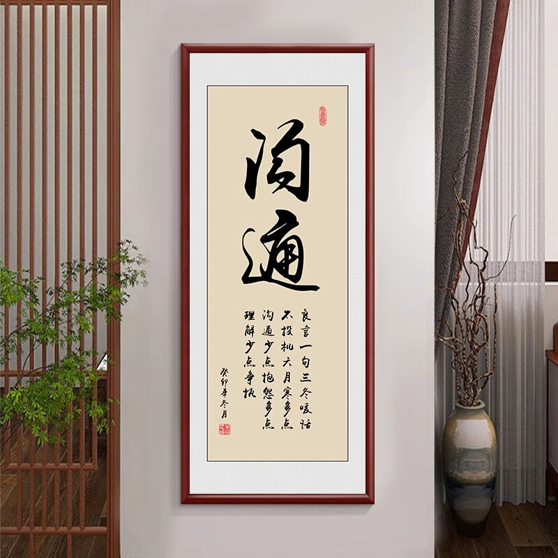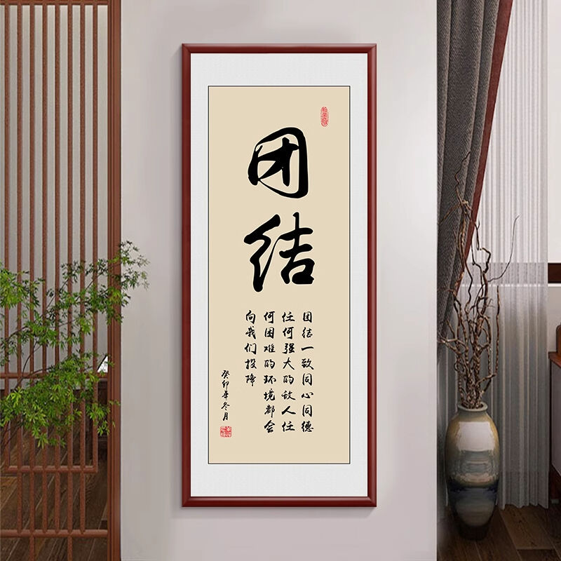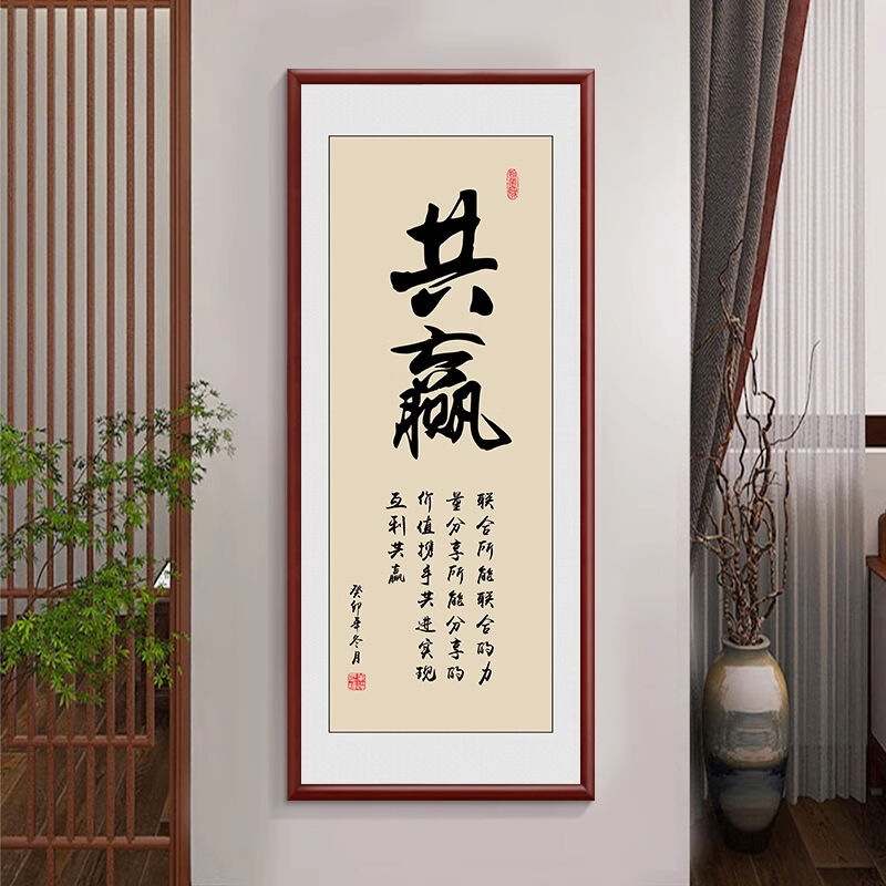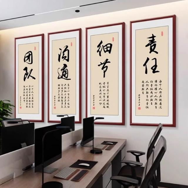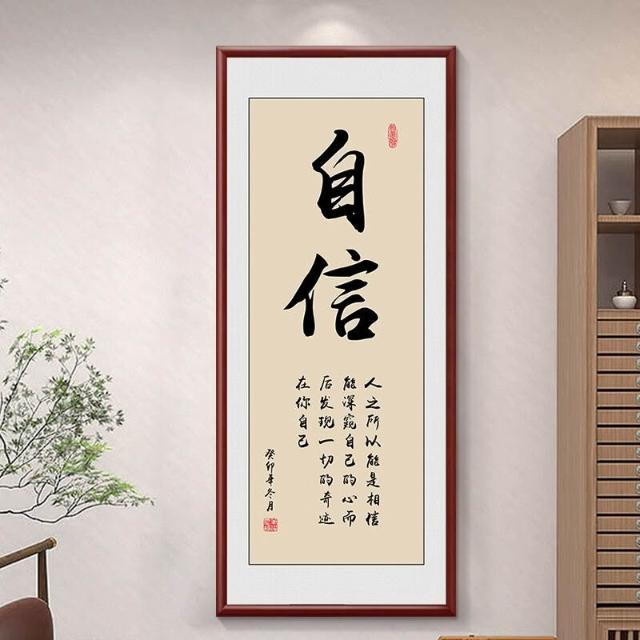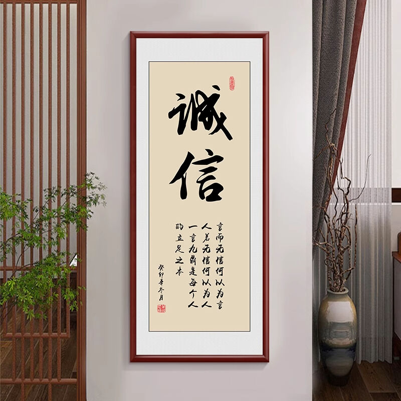 新中式厚德載物茶室公司掛畫 老闆背景牆裝飾畫 辦公室豎版書法字畫