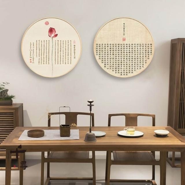 心經掛畫 般若波羅蜜多心經裝飾畫 佛堂茶室牌位供奉壁畫 實木框 荷花 蓮花 乾隆心經 大悲咒