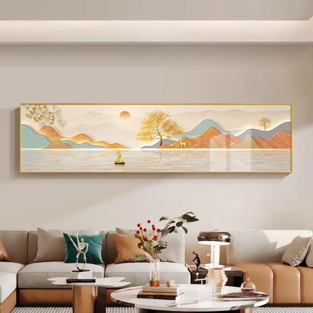 背有靠山臥室裝飾畫 現代輕奢高級感床頭掛畫 山水畫髮財樹客廳壁畫