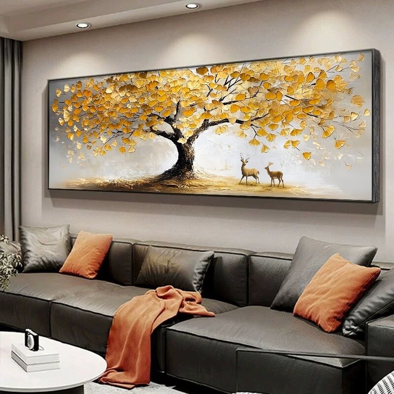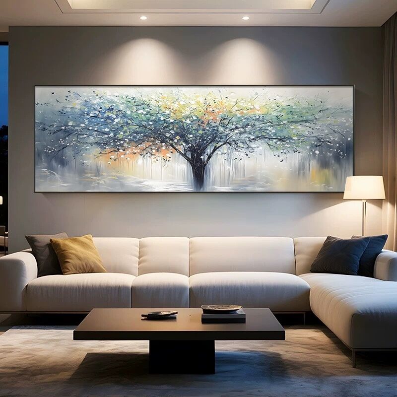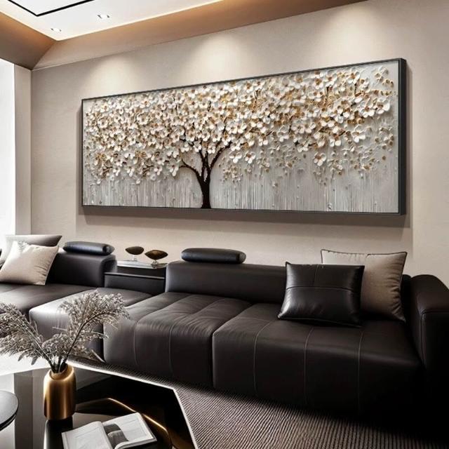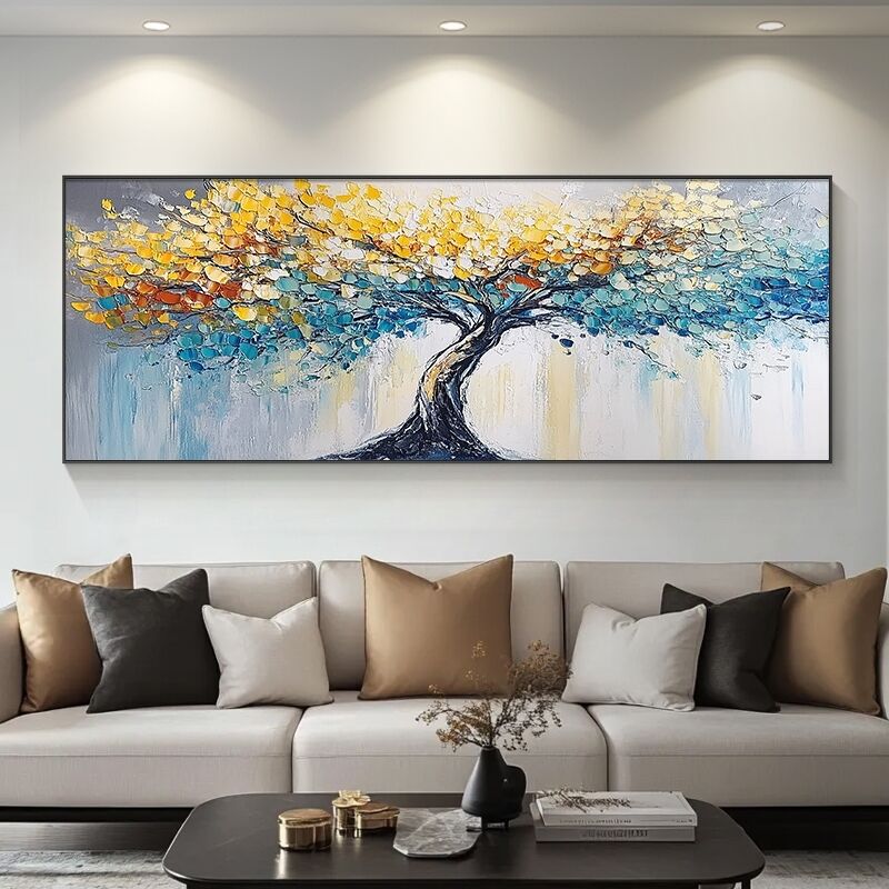 手繪立體發財樹 招財風水油畫 客廳臥室肌理畫 現代高檔沙發背景墻壁畫 書房辦公室掛畫