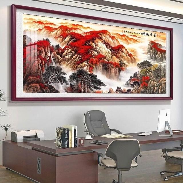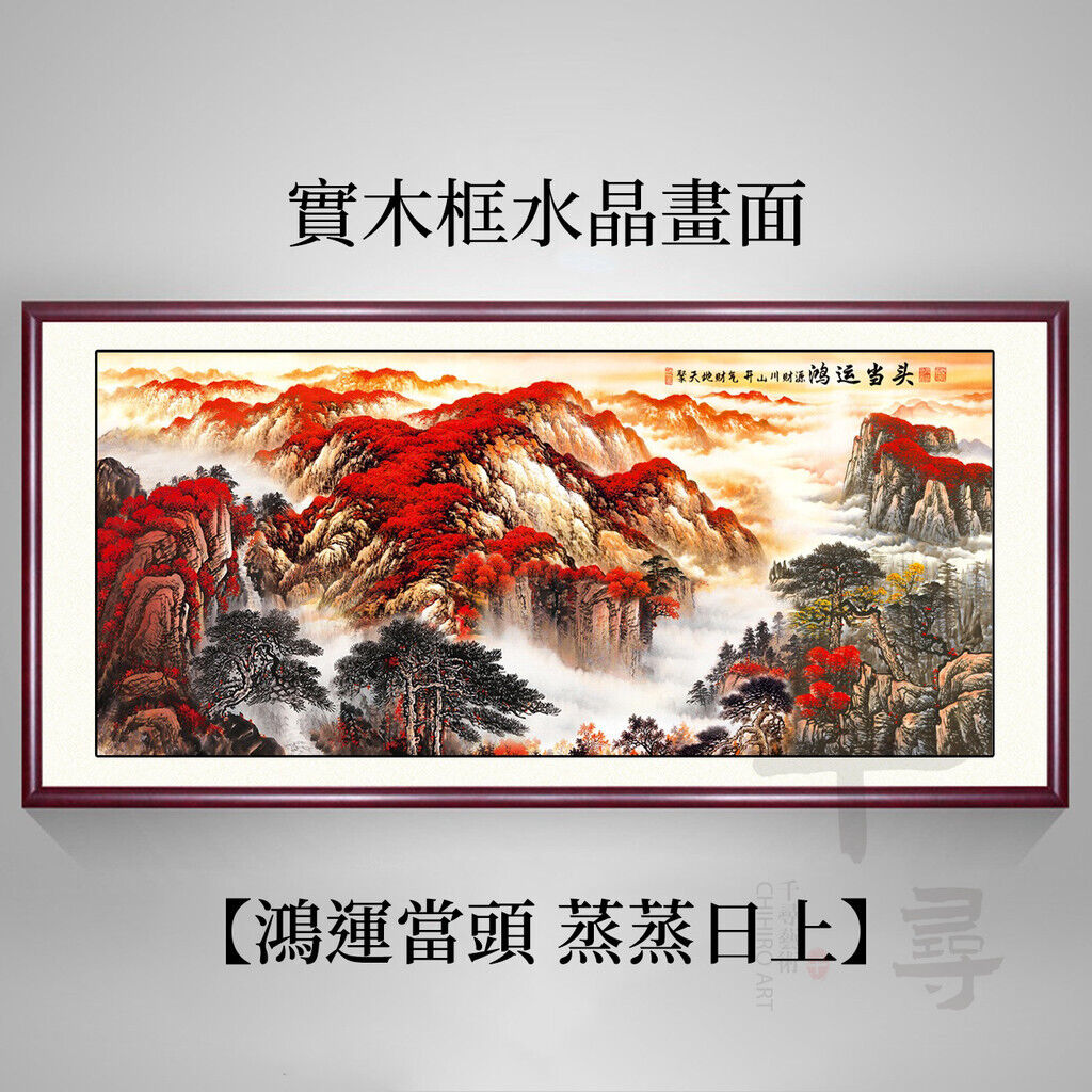 招財開運 山水畫 客廳裝飾畫 風水字畫 海納百川 鴻運當頭 沙發背景墻掛畫 辦公室墻壁畫 實木框畫