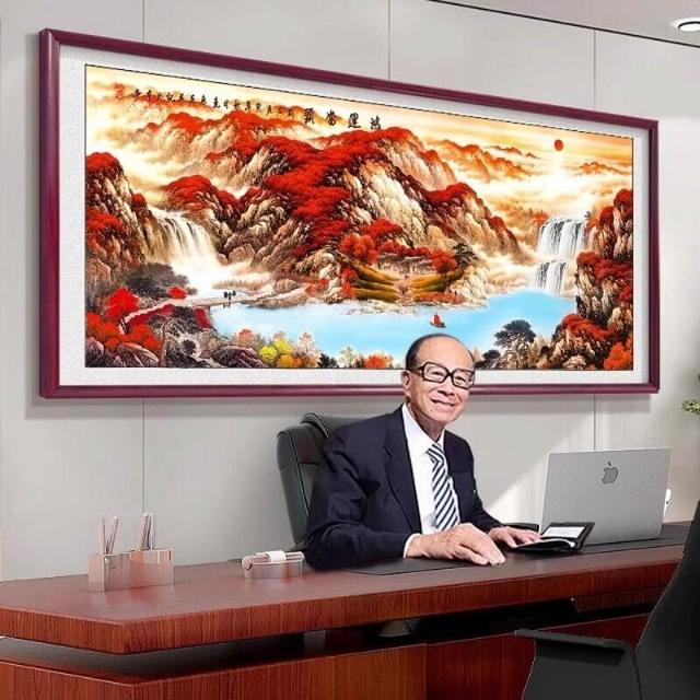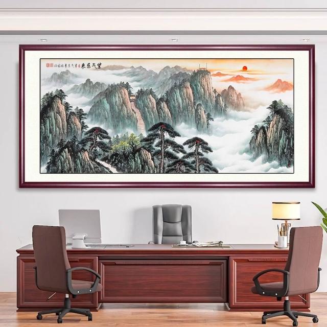 招財開運 山水畫 客廳裝飾畫 風水字畫 海納百川 鴻運當頭 沙發背景墻掛畫 辦公室墻壁畫 實木框畫