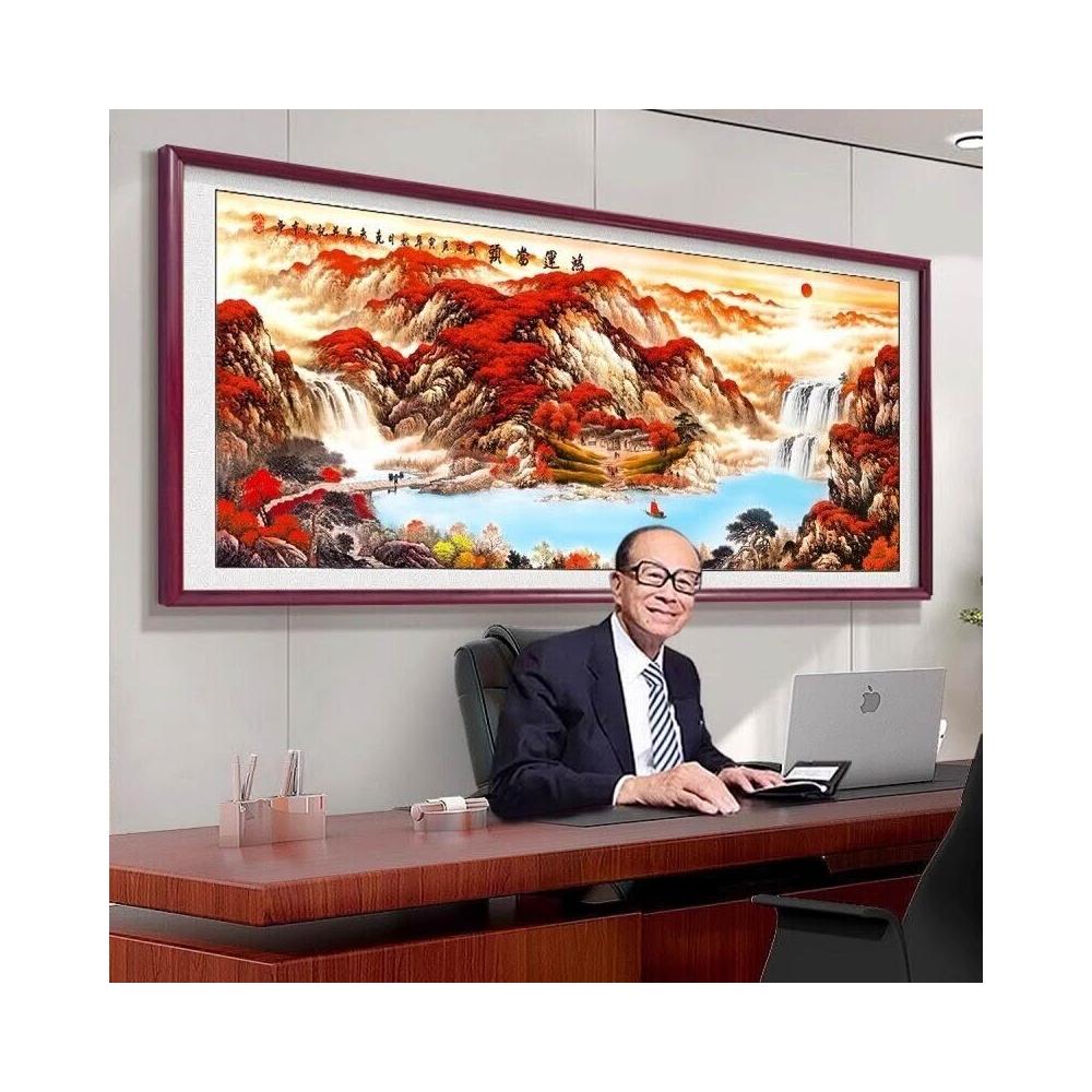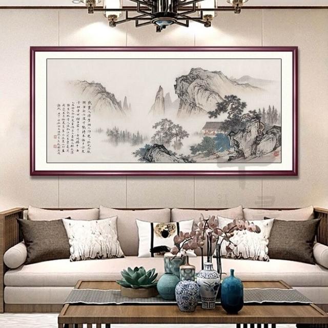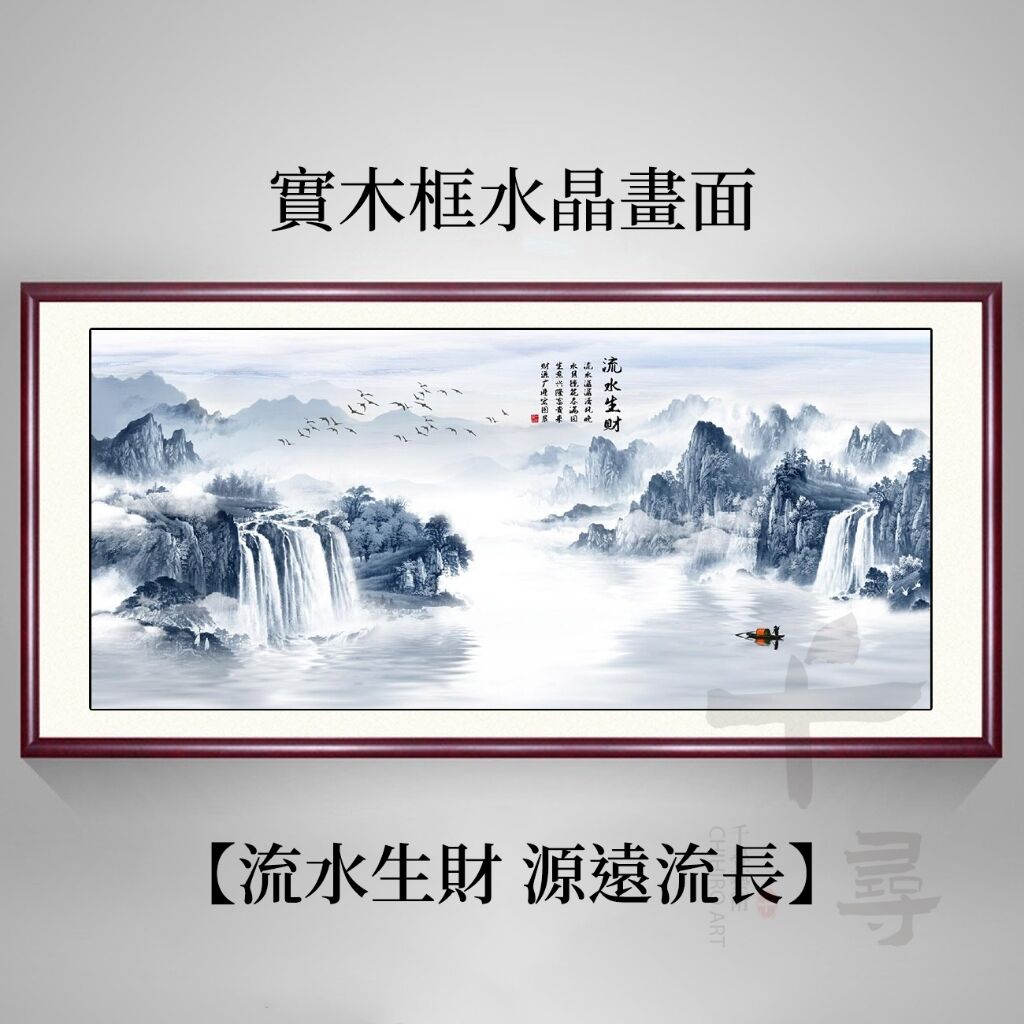 招財開運 山水畫 客廳裝飾畫 風水字畫 海納百川 鴻運當頭 沙發背景墻掛畫 辦公室墻壁畫 實木框畫