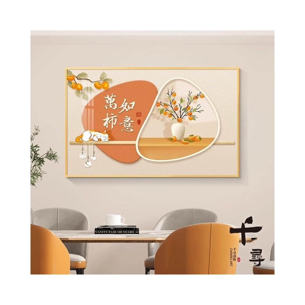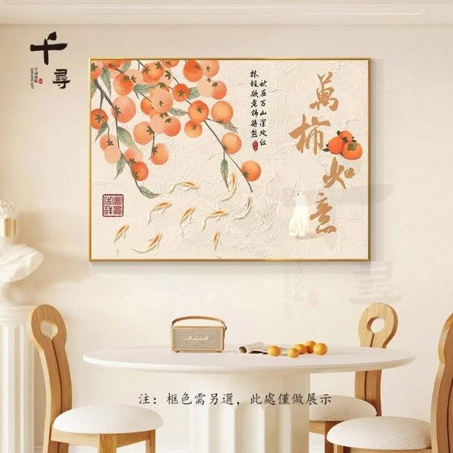 輕奢餐廳裝飾畫 飯廳背景牆掛畫 飯桌壁畫 新中式簡約高級感柿柿如意