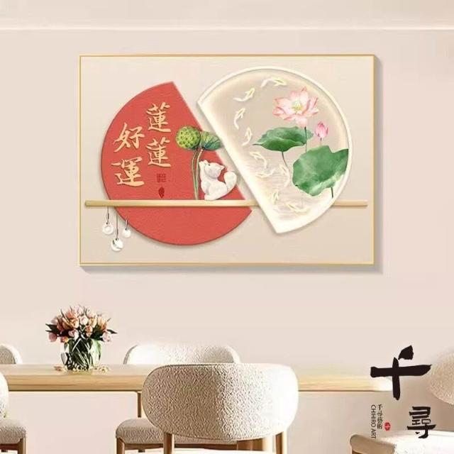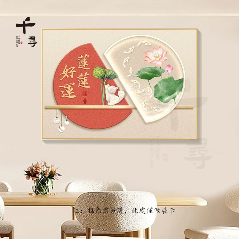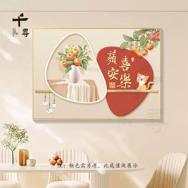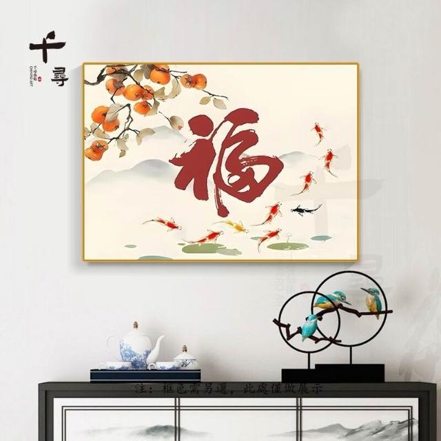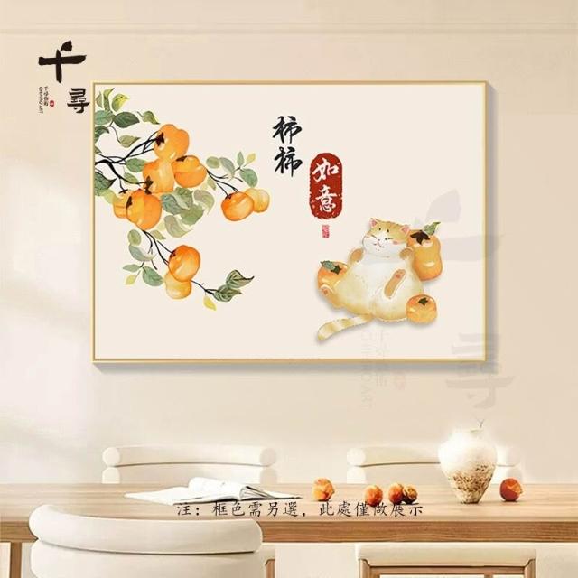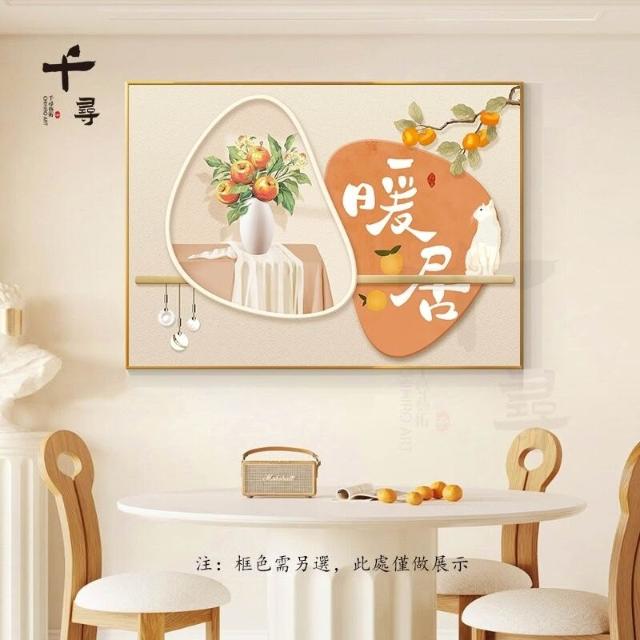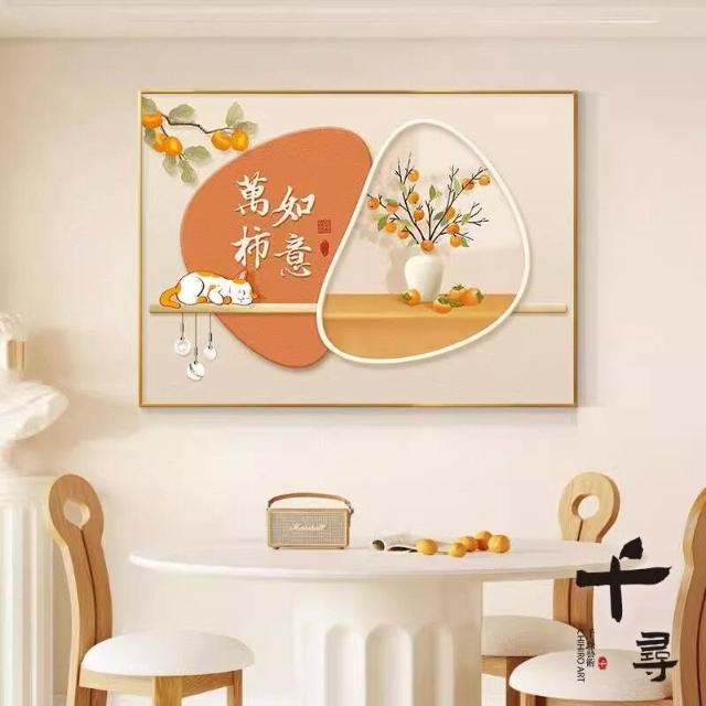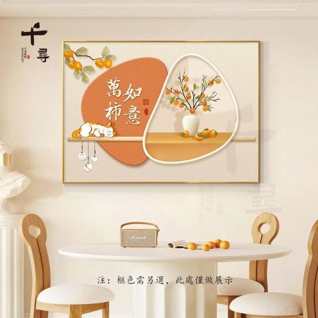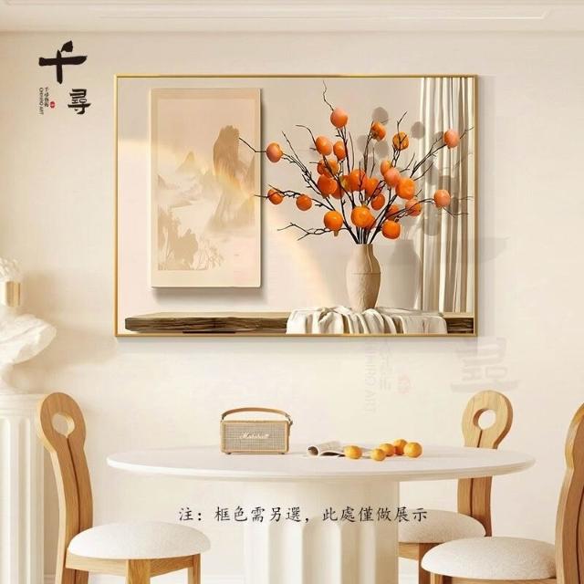 輕奢餐廳裝飾畫 飯廳背景牆掛畫 飯桌壁畫 新中式簡約高級感柿柿如意