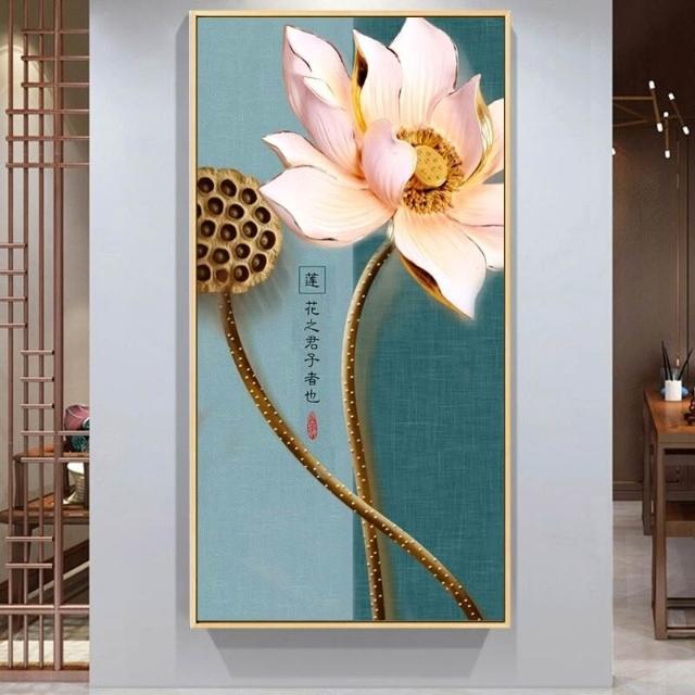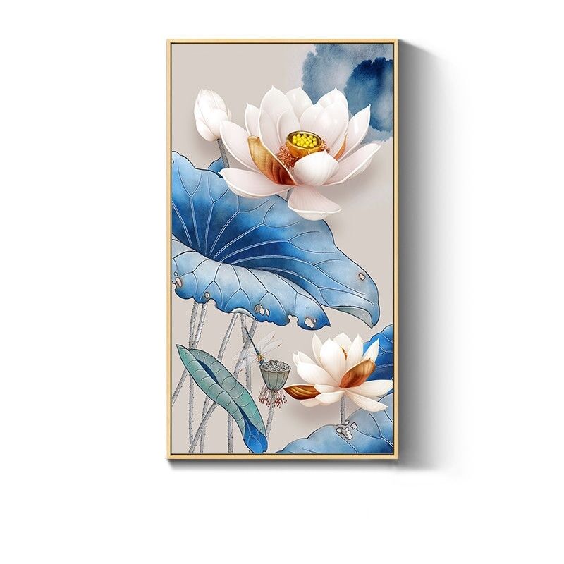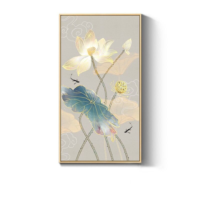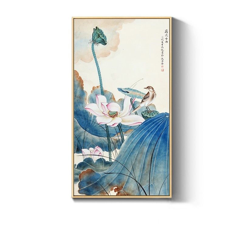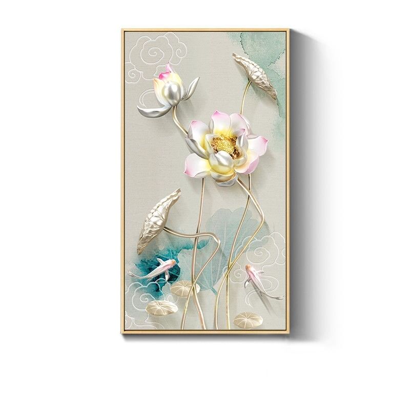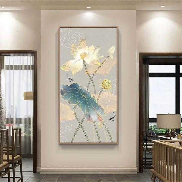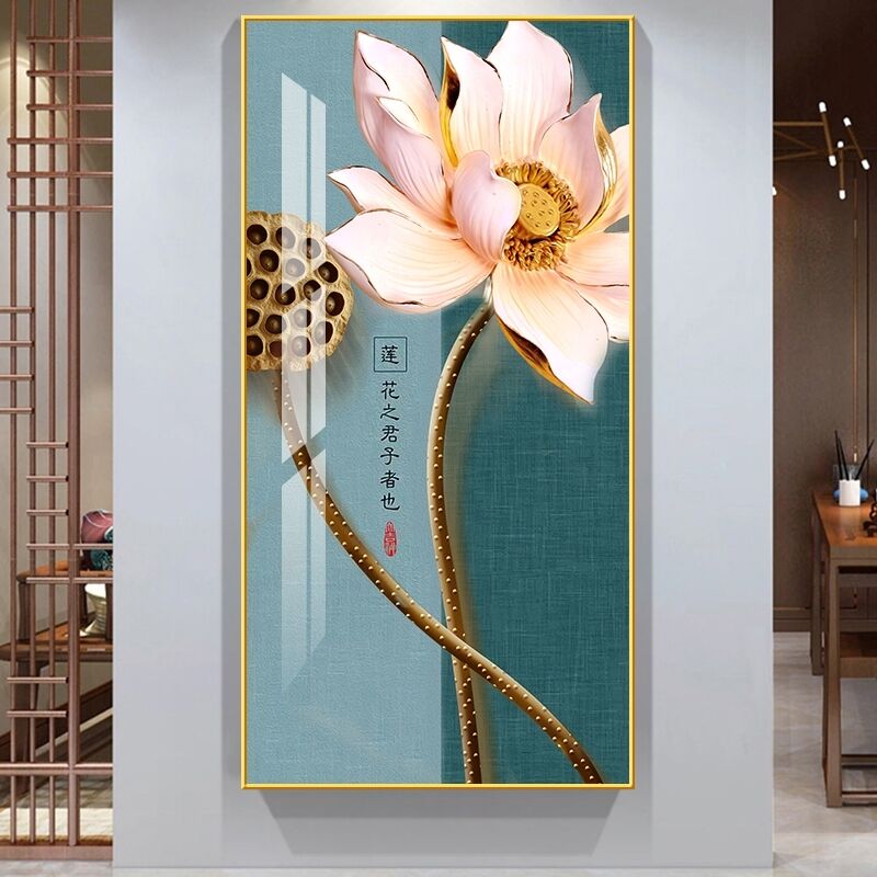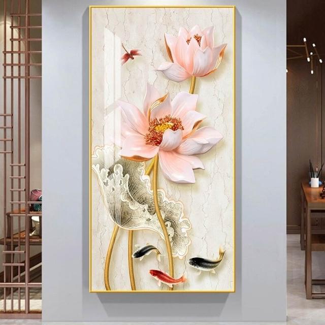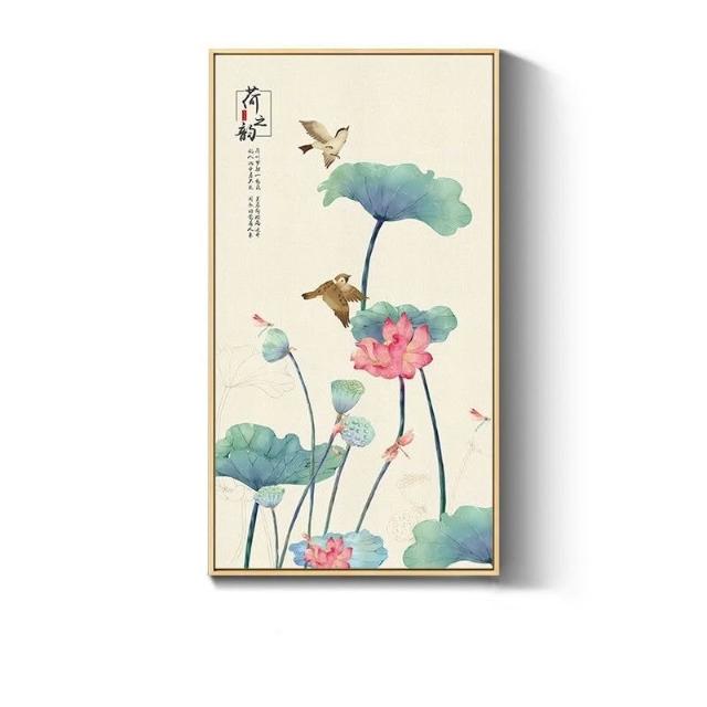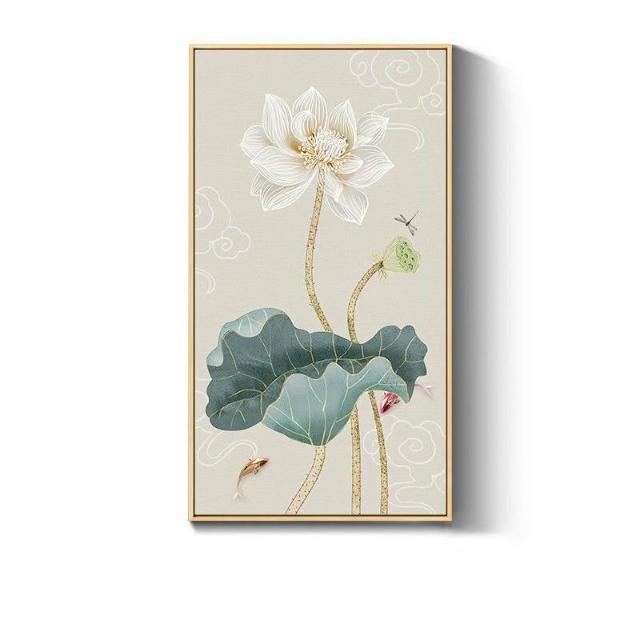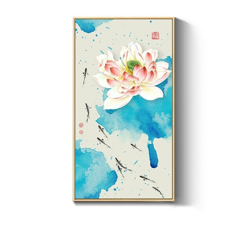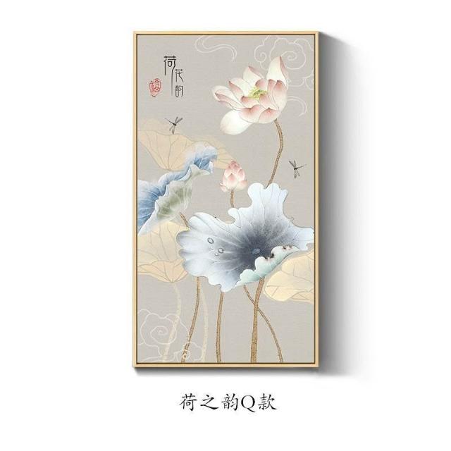 玄關裝飾畫 新中式豎版九魚圖 荷花壁畫 走廊盡頭掛畫 荷韻 蓮花