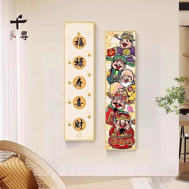 五福臨門玄關裝飾畫 福祿壽喜財寓意好的財神爺 新年入戶掛畫 可定製文字