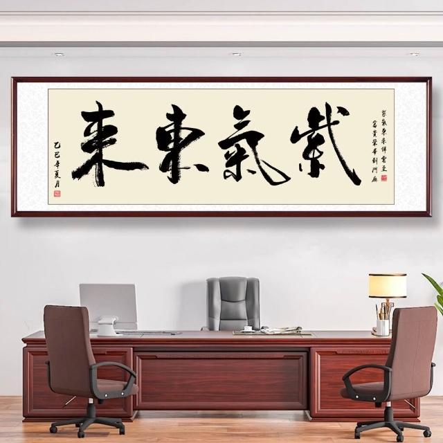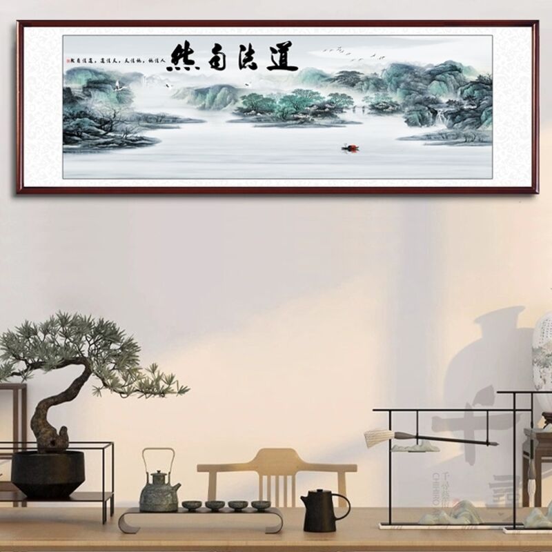 道法自然掛畫 上善若水 紫氣東來裝飾畫 心經 新中式水墨書法壁畫 辦公室書房 實木框新中式招財掛畫 開運