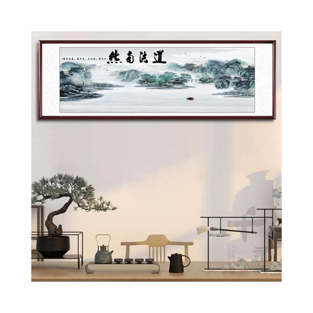 道法自然掛畫 上善若水 紫氣東來裝飾畫 心經 新中式水墨書法壁畫 辦公室書房 實木框新中式招財掛畫 開運