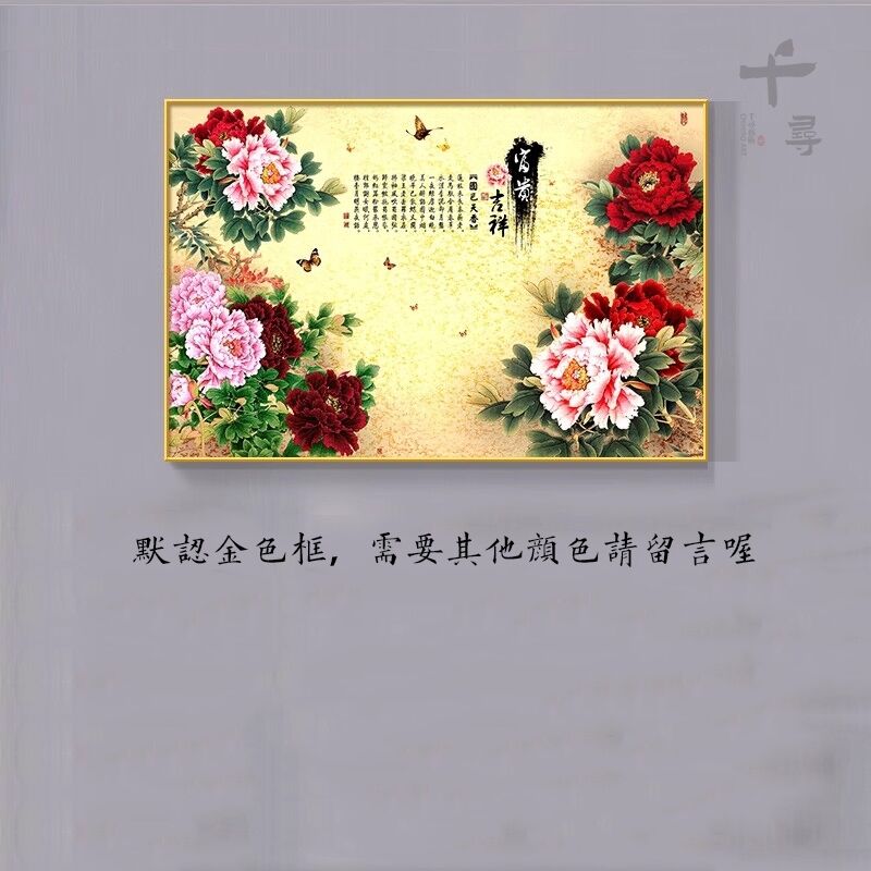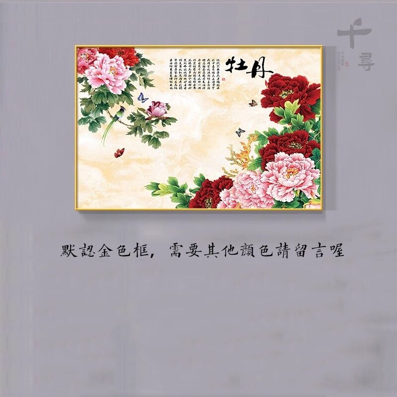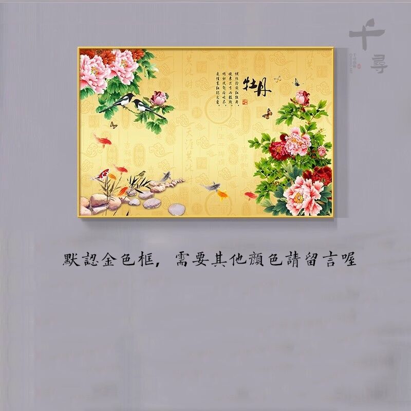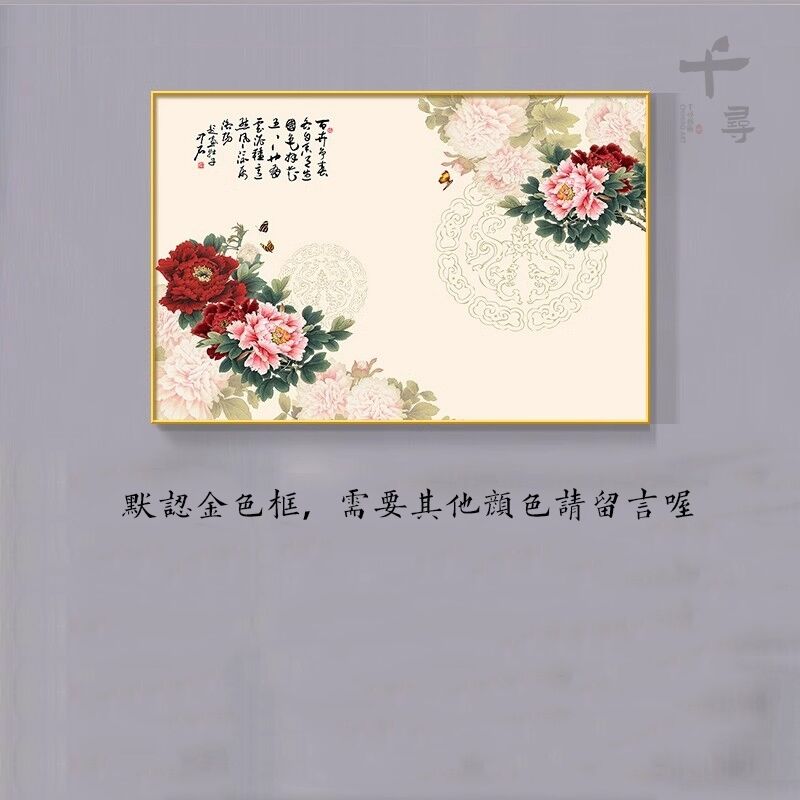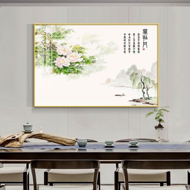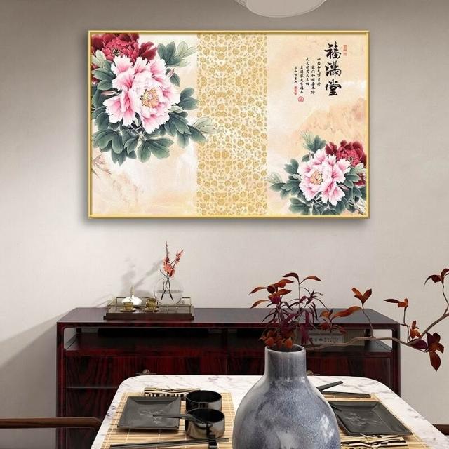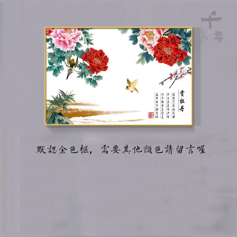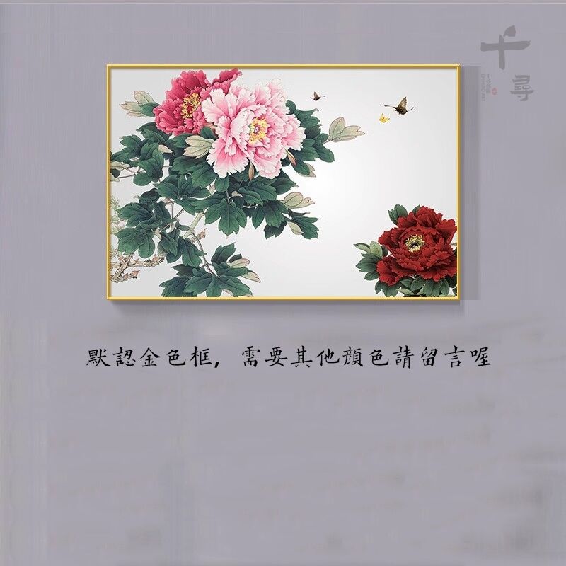 牡丹花掛畫 臥室花開富貴橫版裝飾畫 沙發背景墻畫 茶室壁畫 花鳥國畫 玄關餐廳掛畫 家和萬事興 風水畫
