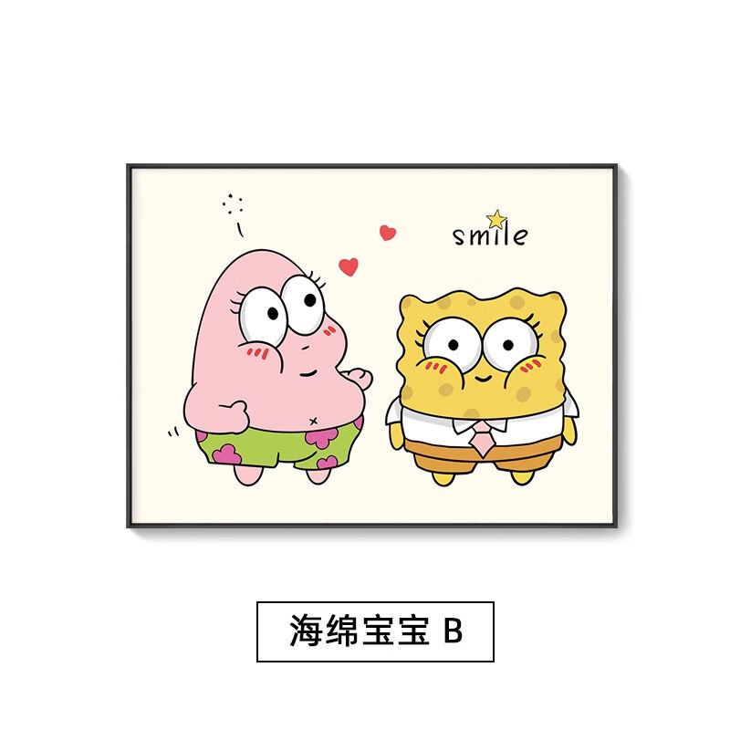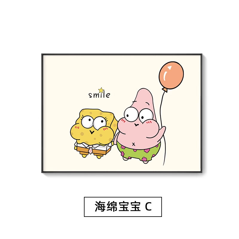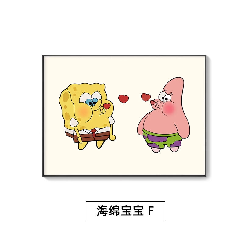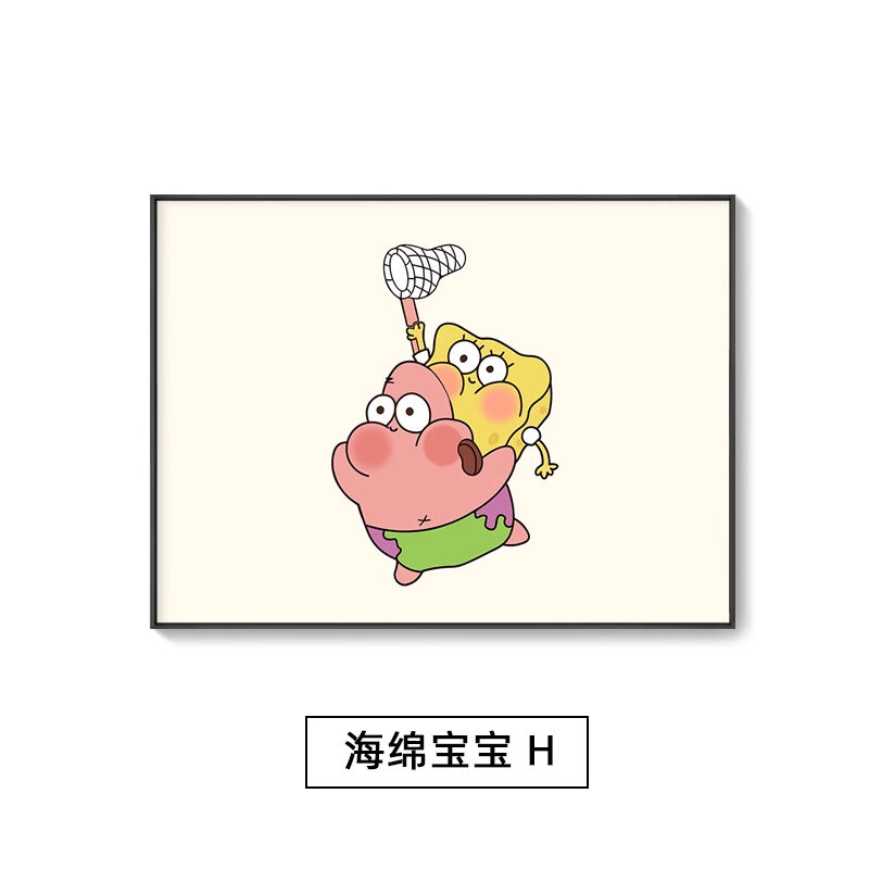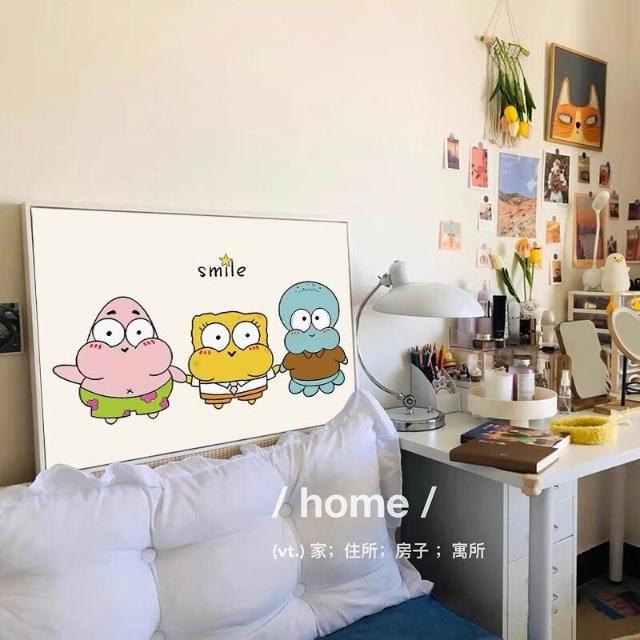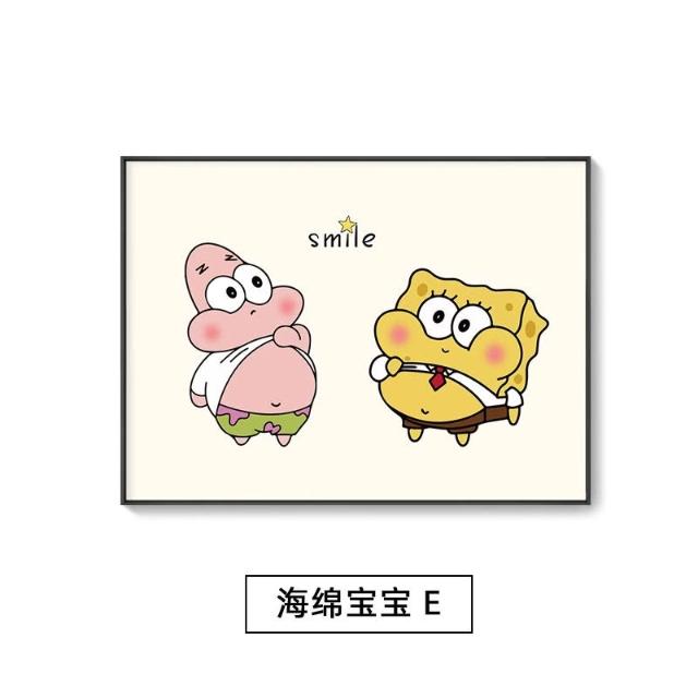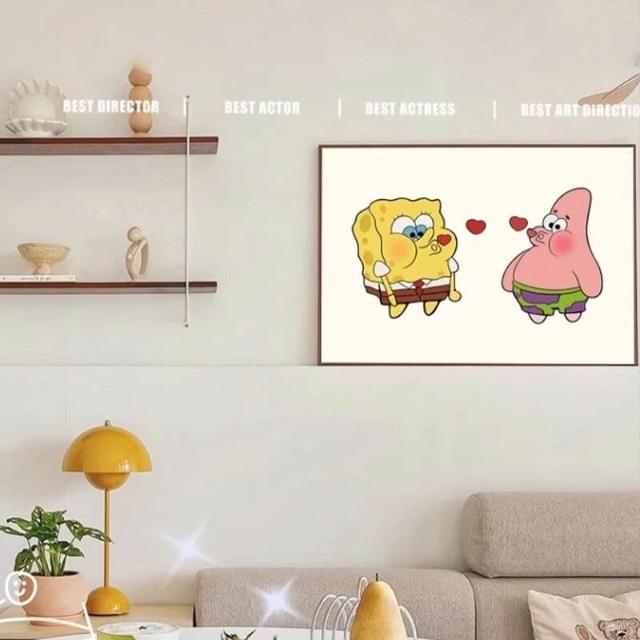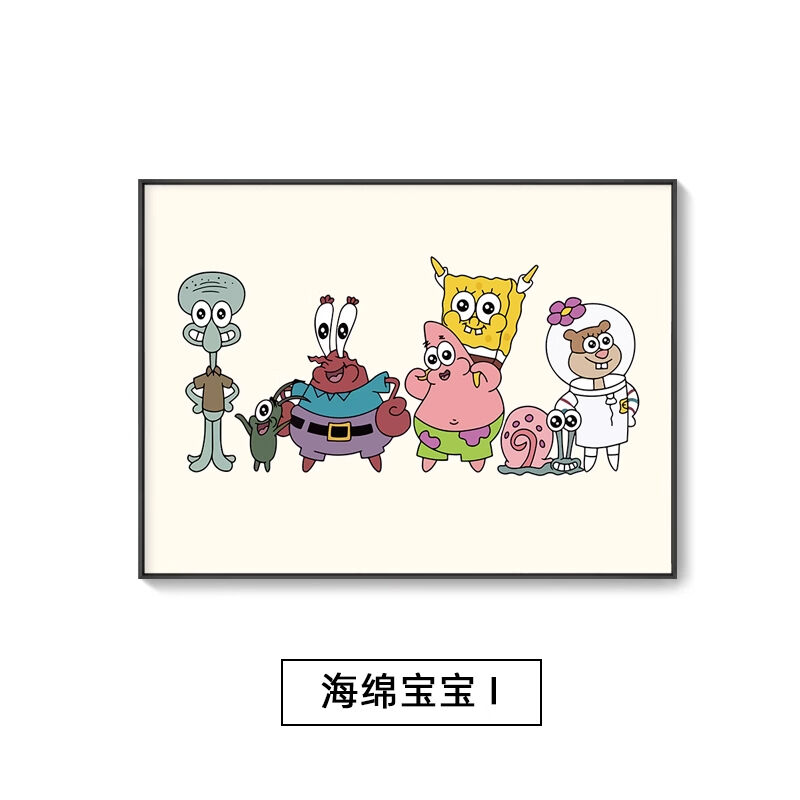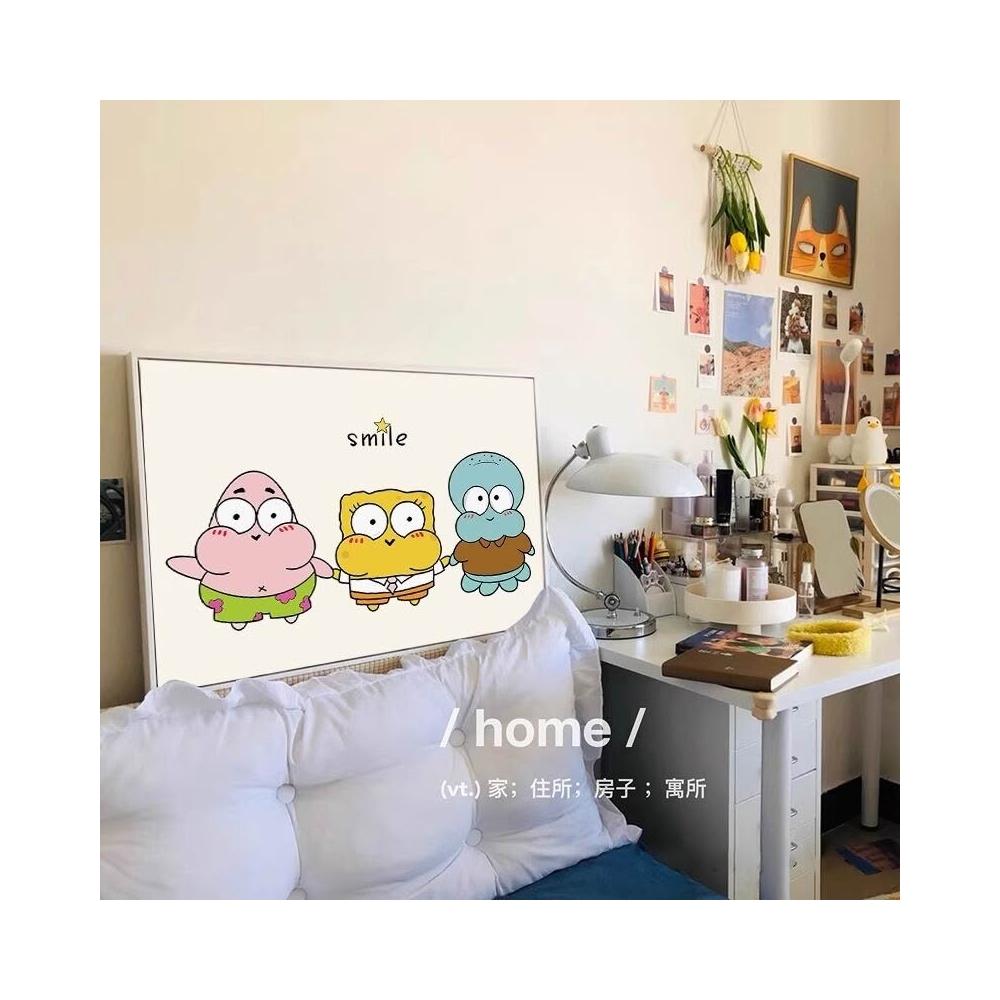海綿寶寶章魚哥掛畫 兒童房派大星裝飾畫 臥室房間卡通背景牆壁畫
