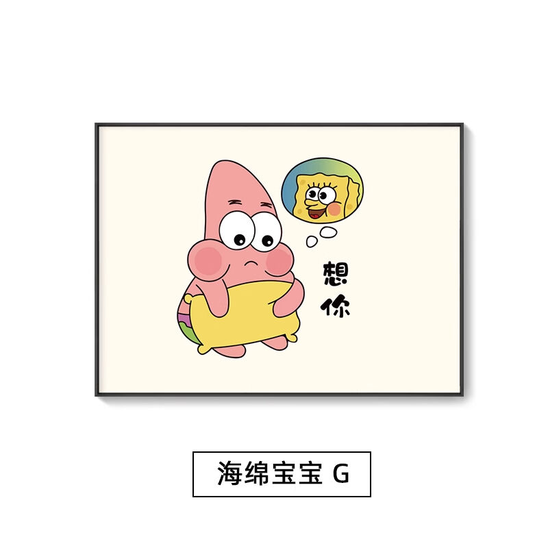 海綿寶寶章魚哥掛畫 兒童房派大星裝飾畫 臥室房間卡通背景牆壁畫