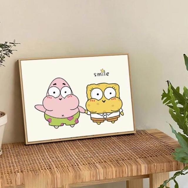 海綿寶寶章魚哥掛畫 兒童房派大星裝飾畫 臥室房間卡通背景牆壁畫