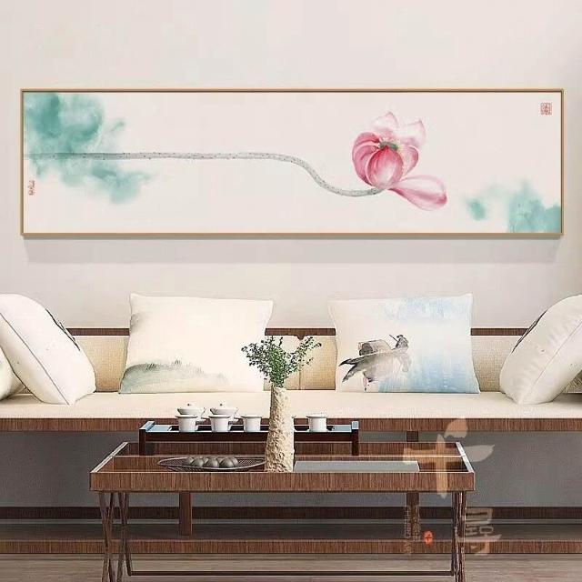 附發票 水墨荷花臥室床頭掛畫 清新淡雅裝飾畫 中式書房茶室禪意壁畫