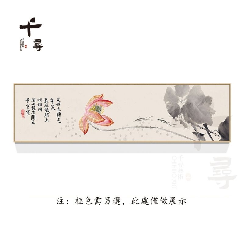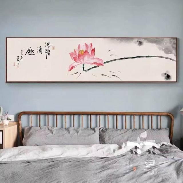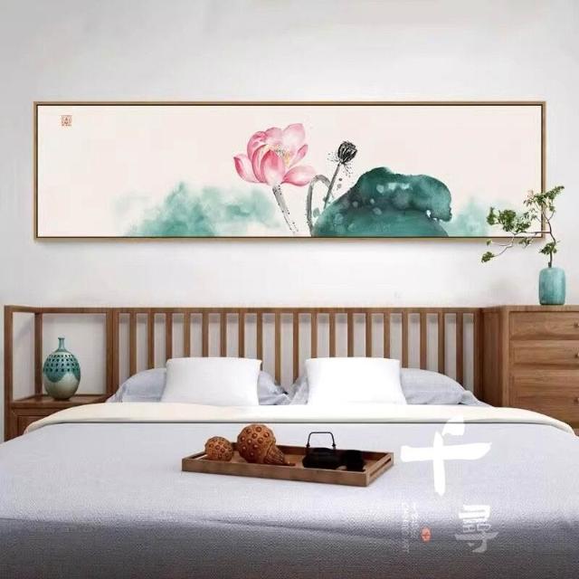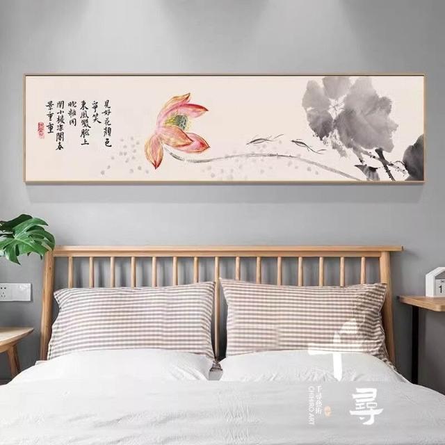 附發票 水墨荷花臥室床頭掛畫 清新淡雅裝飾畫 中式書房茶室禪意壁畫