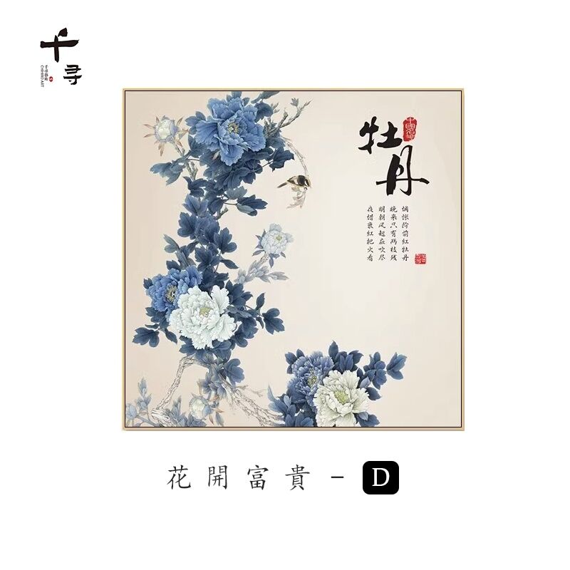 新中式花開富貴墻壁裝飾畫 溫馨牡丹花朵書房客廳玄關壁畫 大氣臥室床頭掛畫