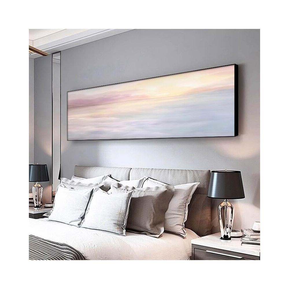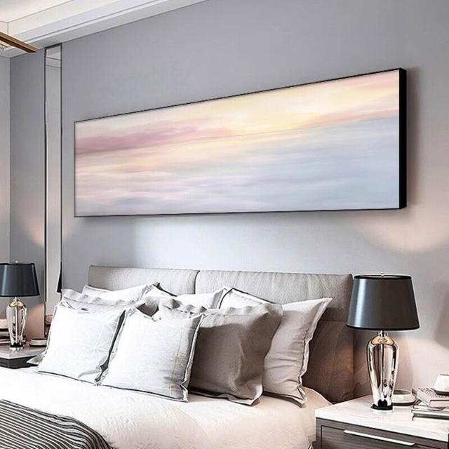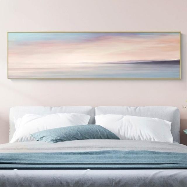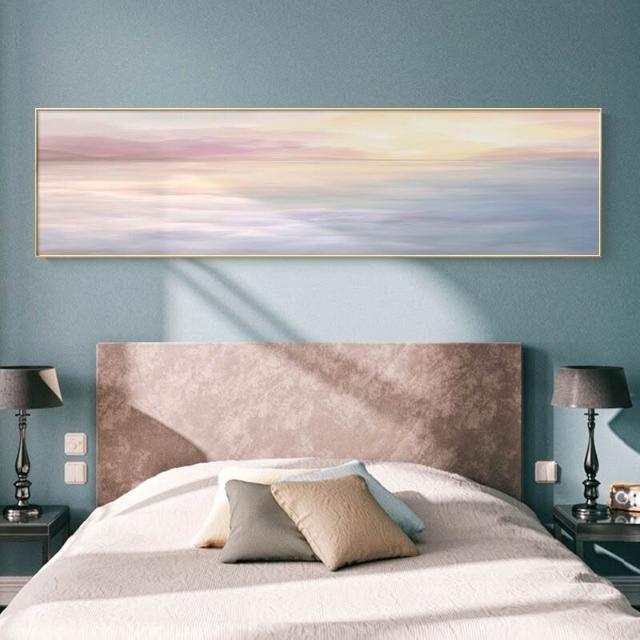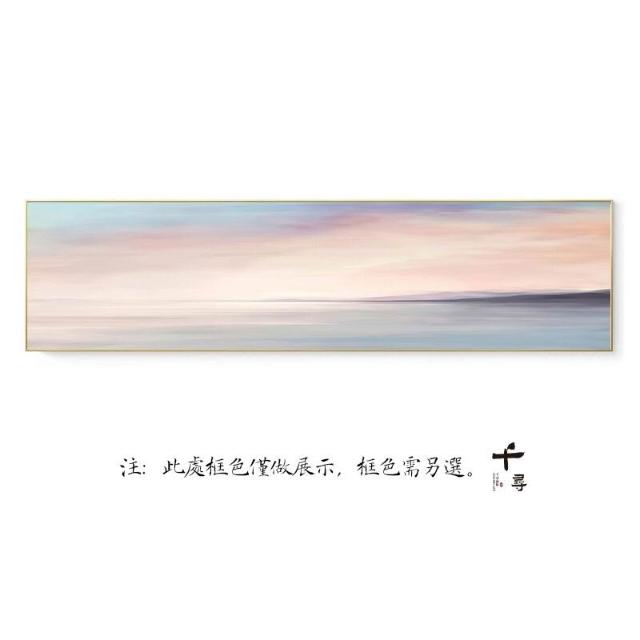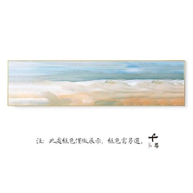 北歐藍色抽象裝飾畫 簡約大氣臥室床頭掛畫 小清新客廳沙發背景墻藝術橫幅壁畫 侘寂風藝術畫