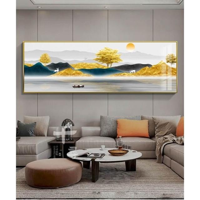 輕奢大氣山水客廳沙發背景牆橫幅裝飾畫 背靠金山招財臥室床頭掛畫 風水壁畫