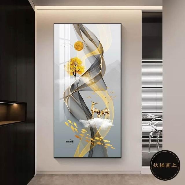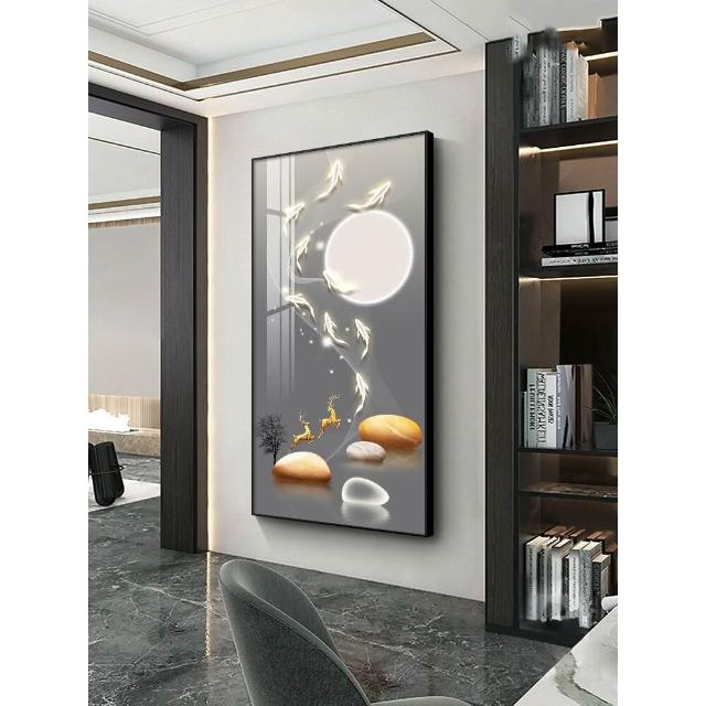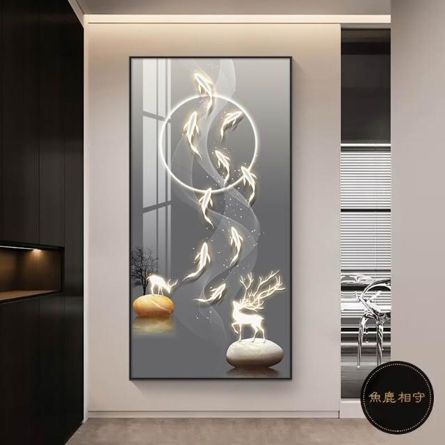 九魚圖掛畫 玄關裝飾畫 直式麋鹿壁畫 走廊過道招財風水畫 福鹿 如意 九魚生財 風水畫