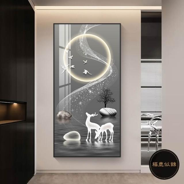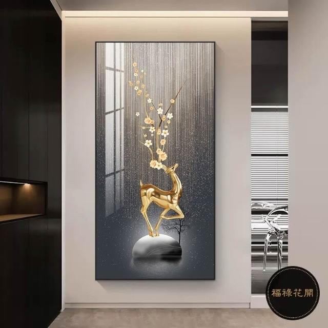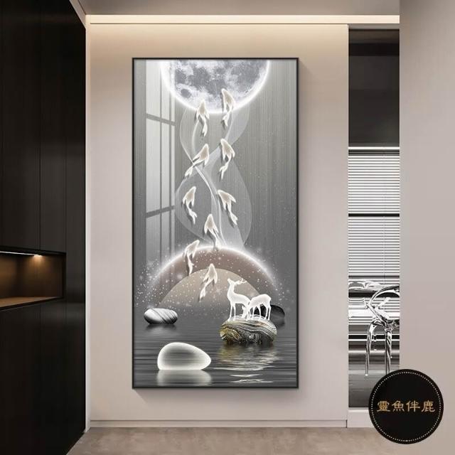 九魚圖掛畫 玄關裝飾畫 直式麋鹿壁畫 走廊過道招財風水畫 福鹿 如意 九魚生財 風水畫