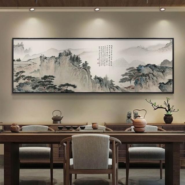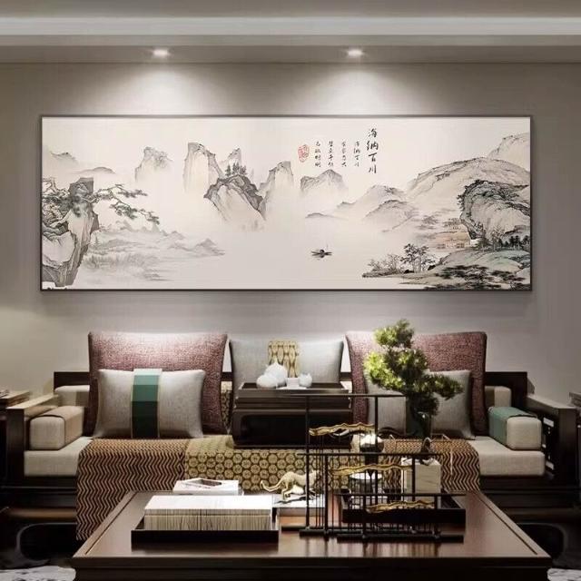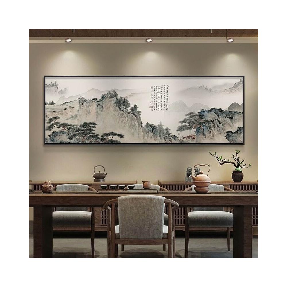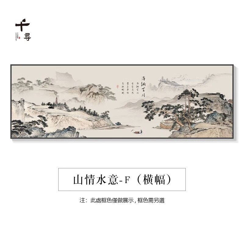 新中式山水掛畫 橫款大氣客廳裝飾畫 沙發背景牆畫 茶室辦公室風景壁畫 招財聚財風水畫