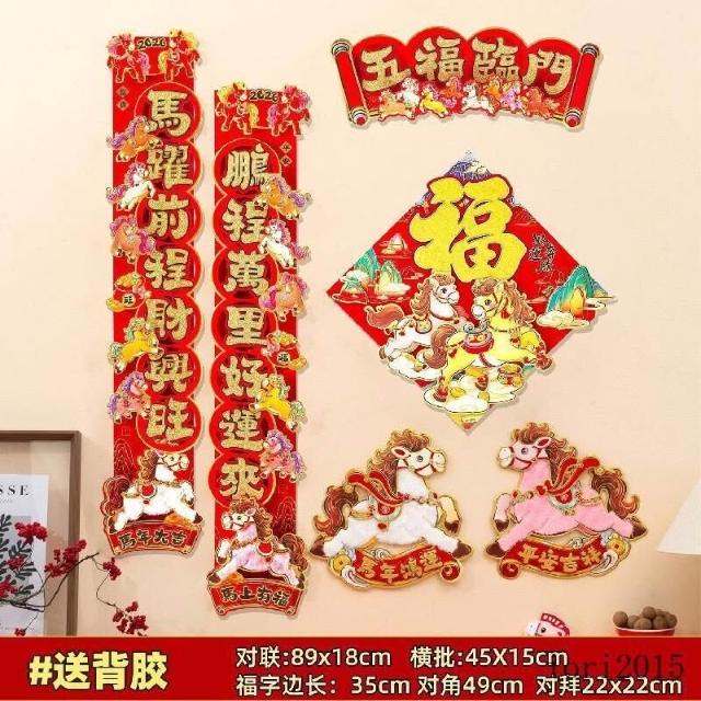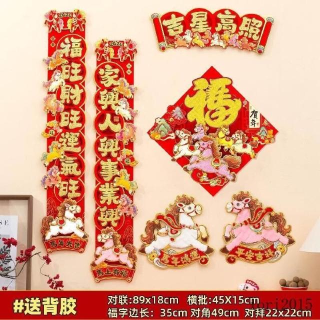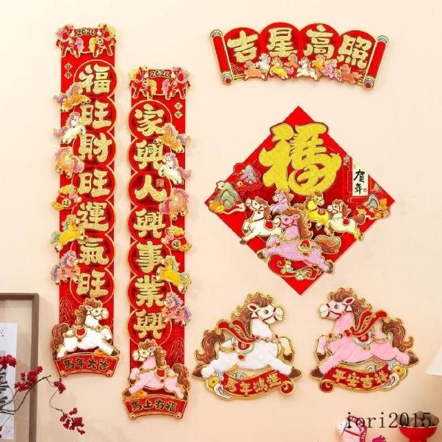 可開發票馬年裝飾 春節裝飾 新年布置 春聯2026馬年對聯春節新款立體卡通植絨春聯福字新年入戶門裝飾品過年
