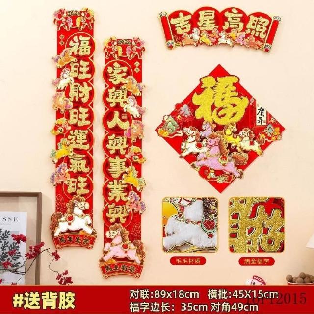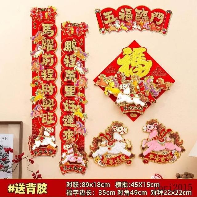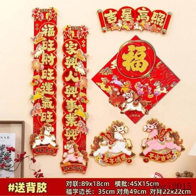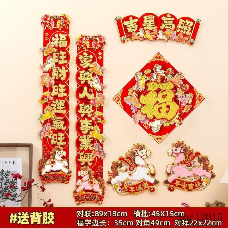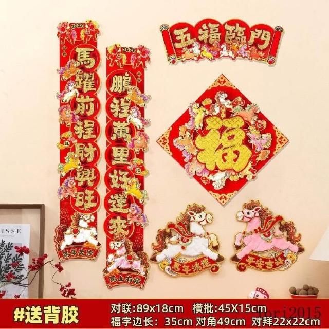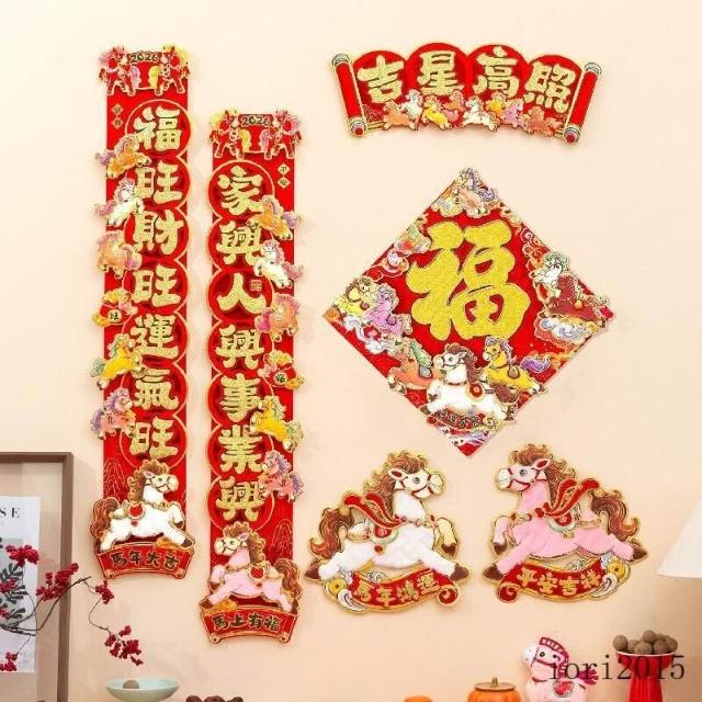 可開發票馬年裝飾 春節裝飾 新年布置 春聯2026馬年對聯春節新款立體卡通植絨春聯福字新年入戶門裝飾品過年