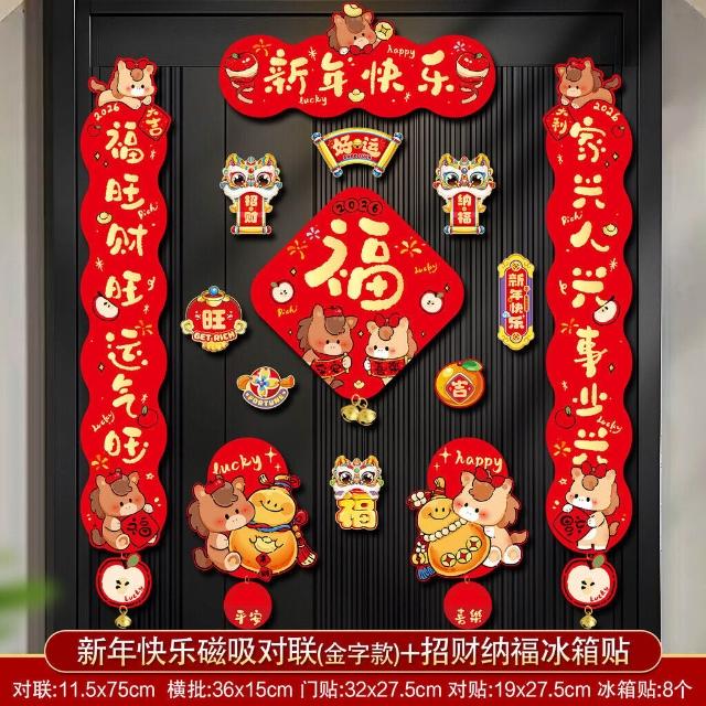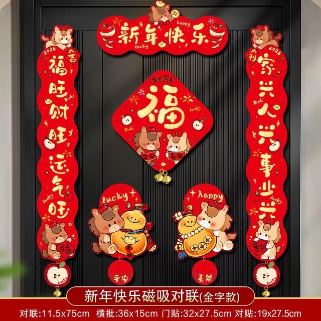 可開發票 新年磁吸對聯春聯2026馬年新款過年入戶門大福字門貼春節用品