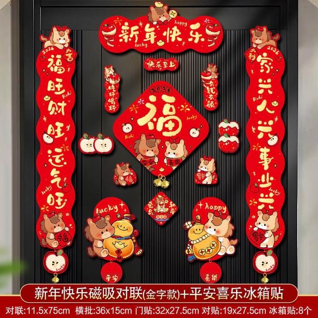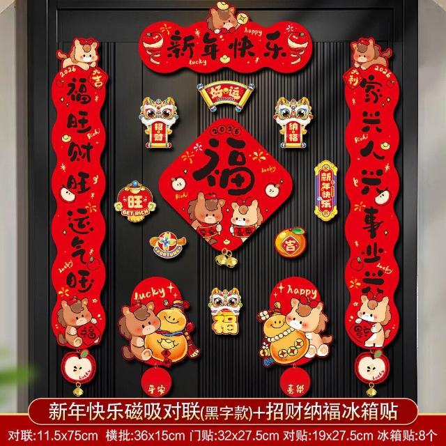 可開發票 新年磁吸對聯春聯2026馬年新款過年入戶門大福字門貼春節用品