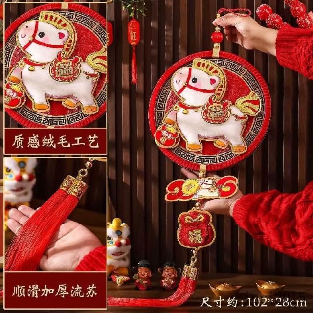 可開發票馬年裝飾 春節裝飾 新年布置 2026馬年新款立體毛絨生肖掛飾新年春節裝飾掛件過年客廳玄關門掛