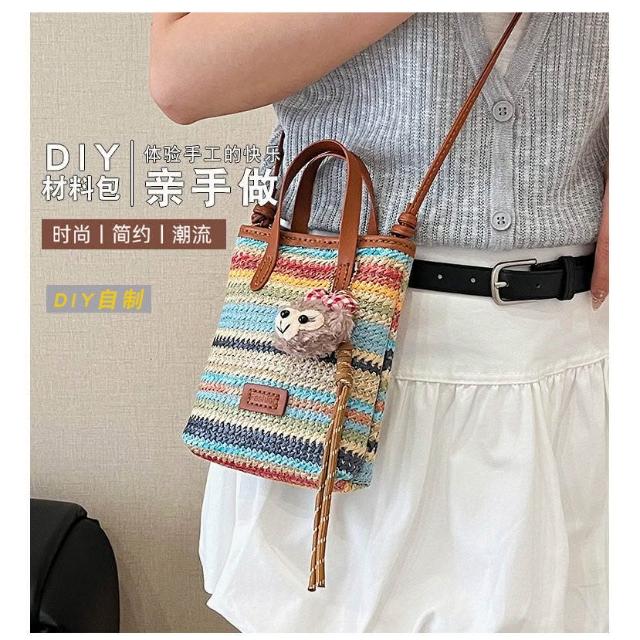 精品包包波西米亞草編包女夏季2026新款diy手工編織包包自製材料包單肩包