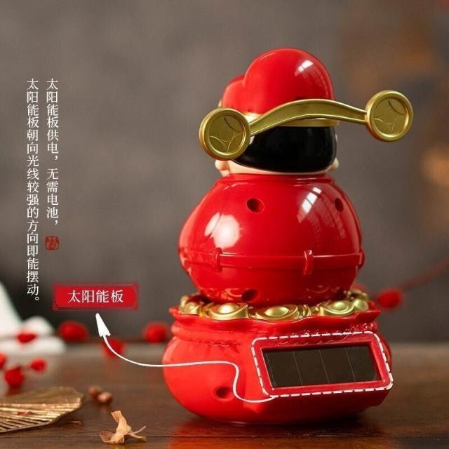 新太陽能搖擺財神爺招財擺件汽車辦公室家用車內招財車載裝飾品