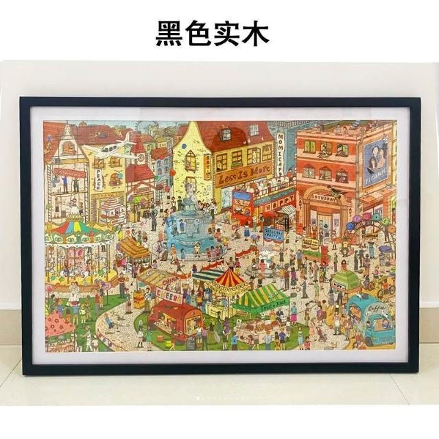 小鎮的週末1000片拼圖框 50 75貓的天空之城拼圖裱框帶卡紙留白框只有框