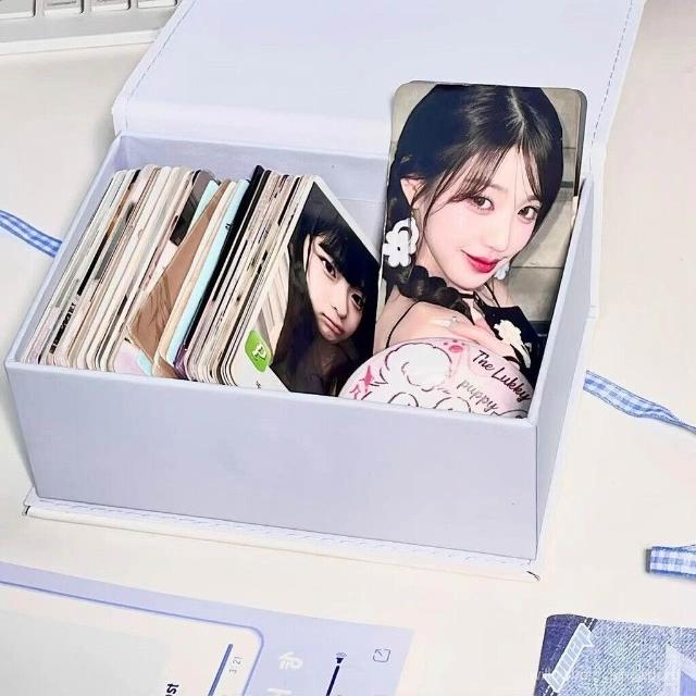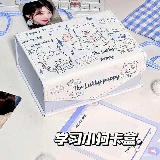 學習小狗pu皮質卡盒追星卡防塵帶蓋可愛磁吸桌麵收納盒