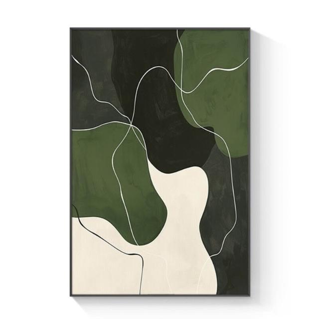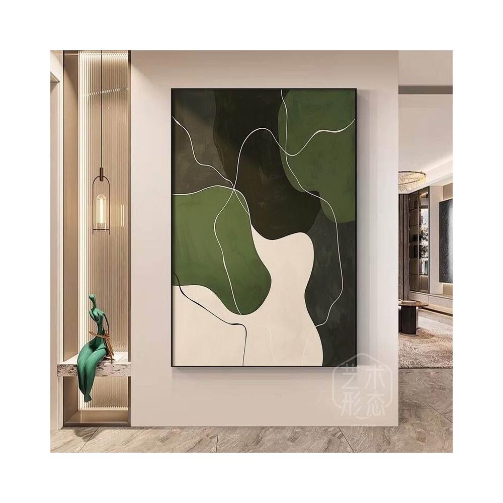 綠色 抽象 大鋁合金外框裝飾掛畫內框畫無框畫桌面擺畫簡約大氣輕奢落地畫背景墻裝飾框藝術畫