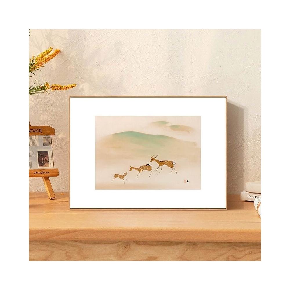 靈鹿 水墨寫意 雅緻 大尺寸定製畫大型鋁合金框掛畫無框畫內框畫擺畫落地畫 國風裝潢藝術墻畫