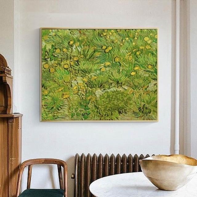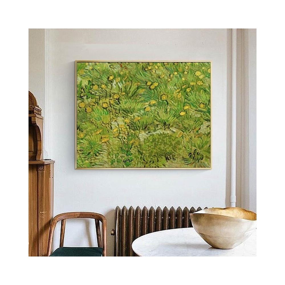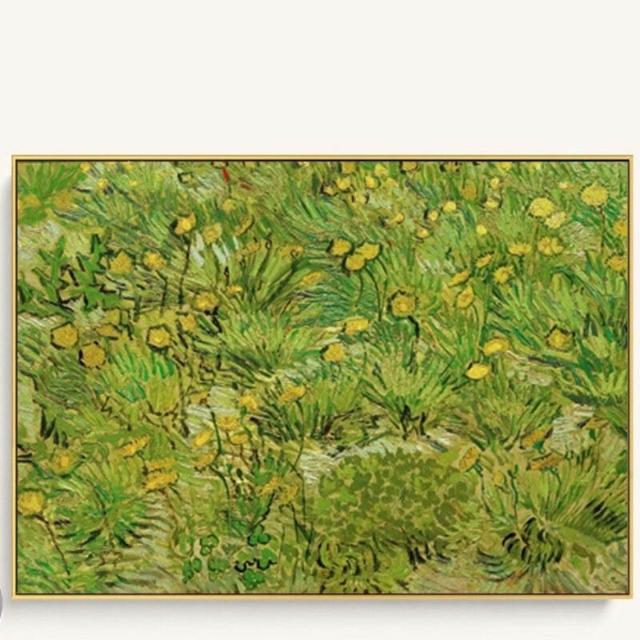 名畫系列 梵谷 有蒲公英的田野 橫版小鋁合金內框畫無框畫掛畫擺畫餐廳中島背景墻裝飾框畫藝術畫