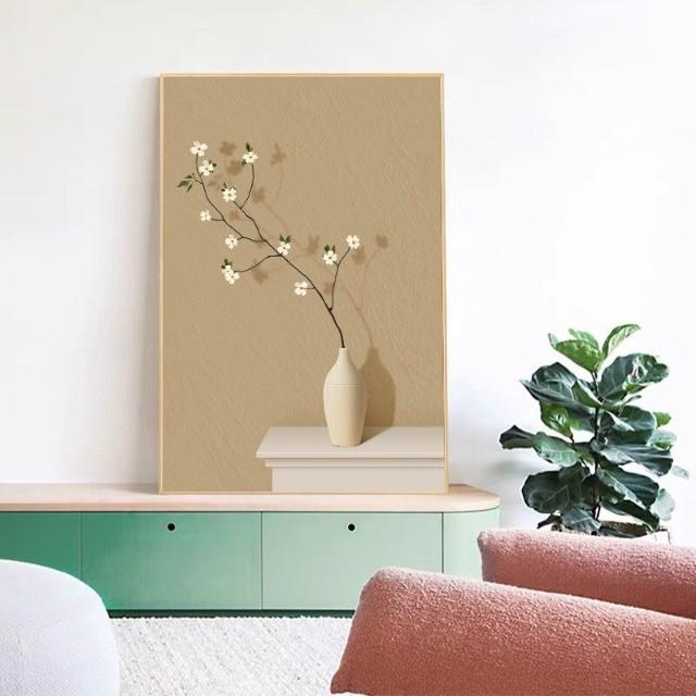 花瓶 日式極簡清新素雅 小鋁合金外框裝飾掛畫無框畫內框畫桌面擺畫輕奢落地畫背景墻裝飾框藝術畫
