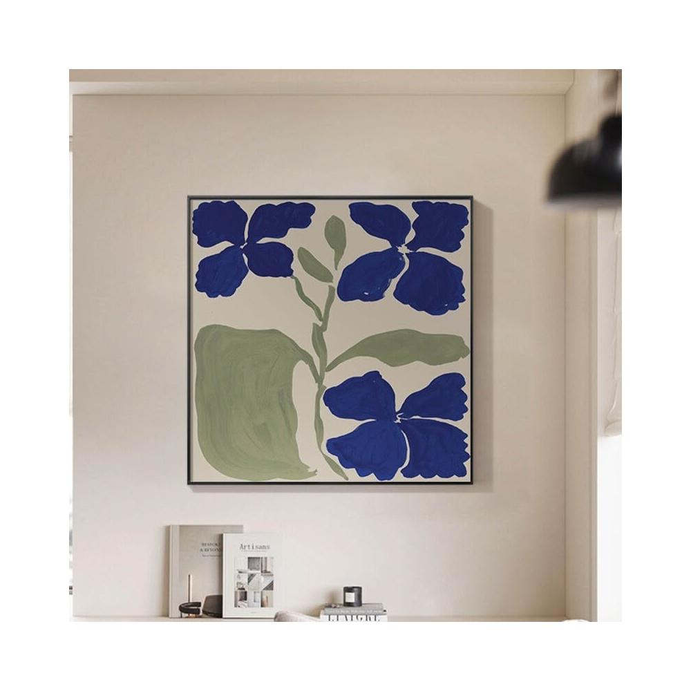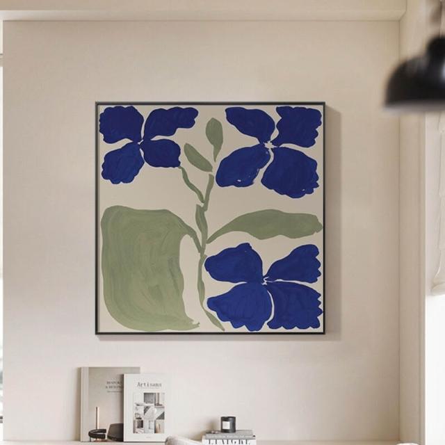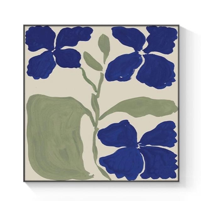 奶油風 藍色花卉 小鋁合金外框裝飾掛畫內框畫無框畫桌面擺畫簡約大氣輕奢落地畫背景墻裝飾框藝術畫