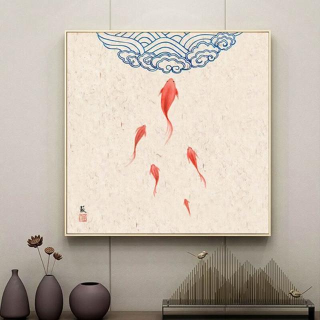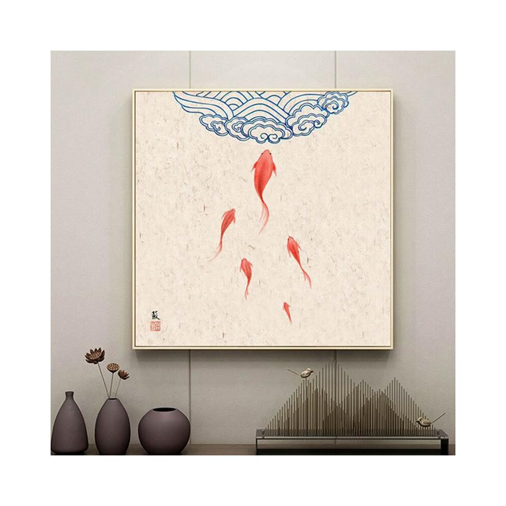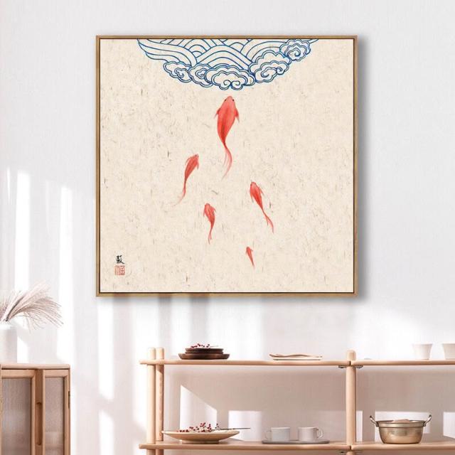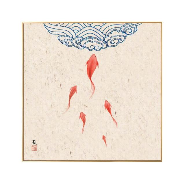 好運錦鯉 小鋁合金外框裝飾掛畫無框畫桌面擺畫古典中式祥雲鯉魚美好寓意輕奢落地畫背景墻壁畫