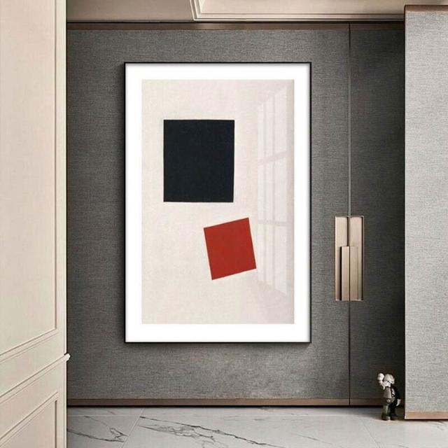 馬列維奇 雲淡風輕 抽象色塊 幾何 黑白 大內框畫無框畫掛畫擺畫現代簡約背景墻裝飾框畫藝術畫