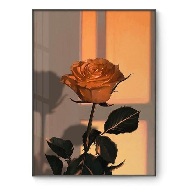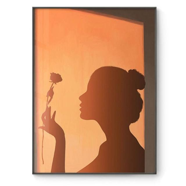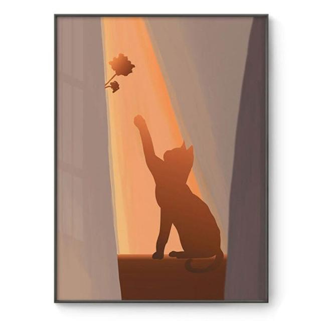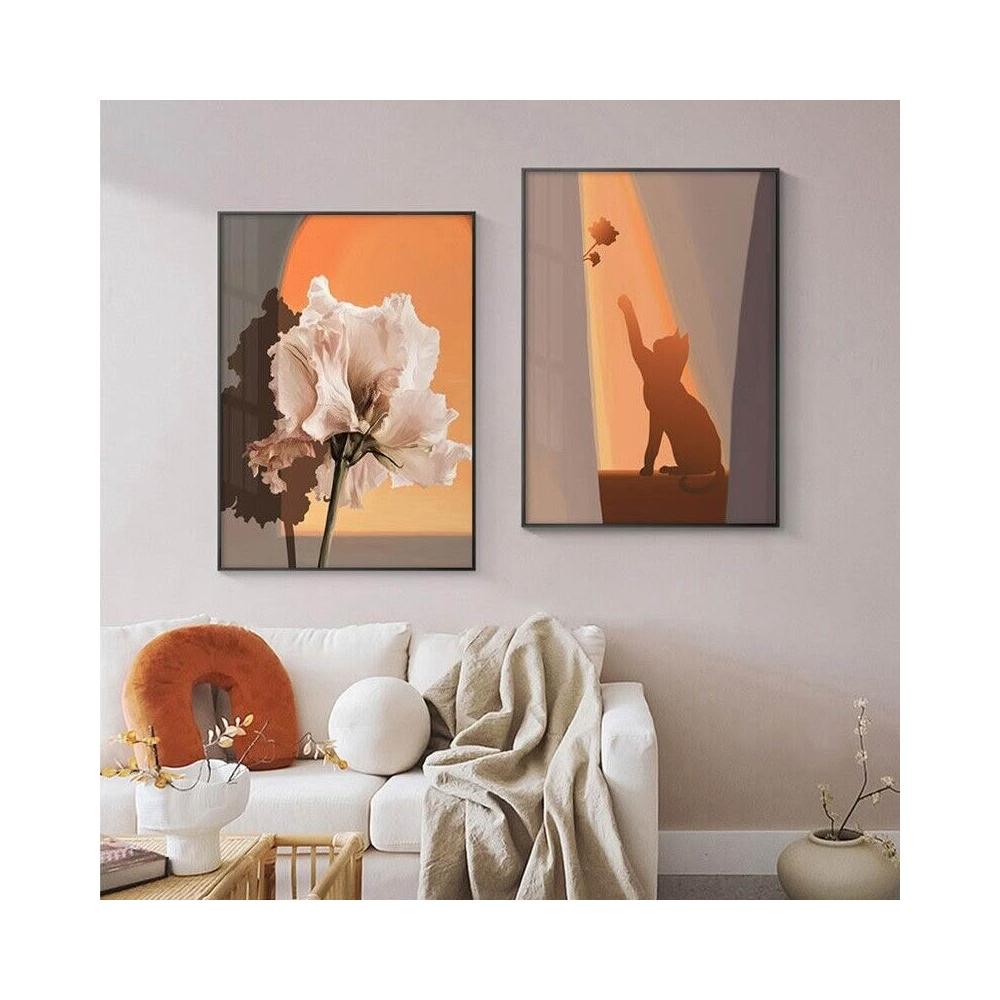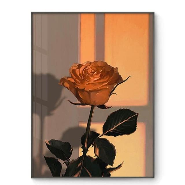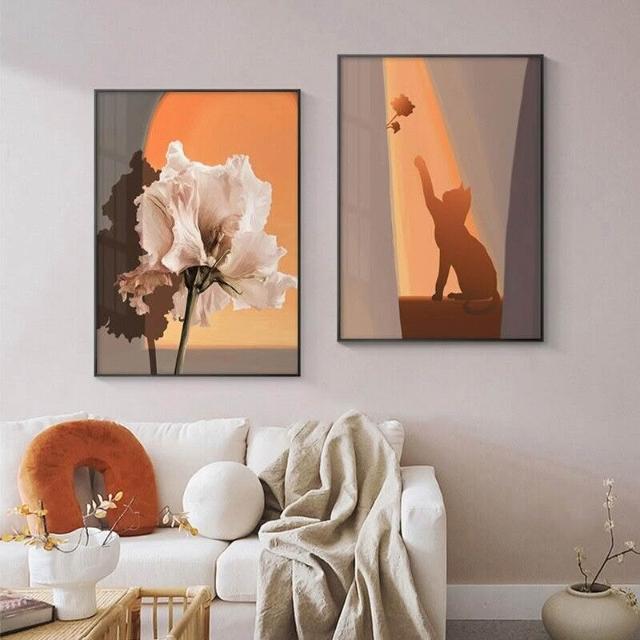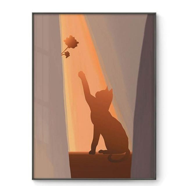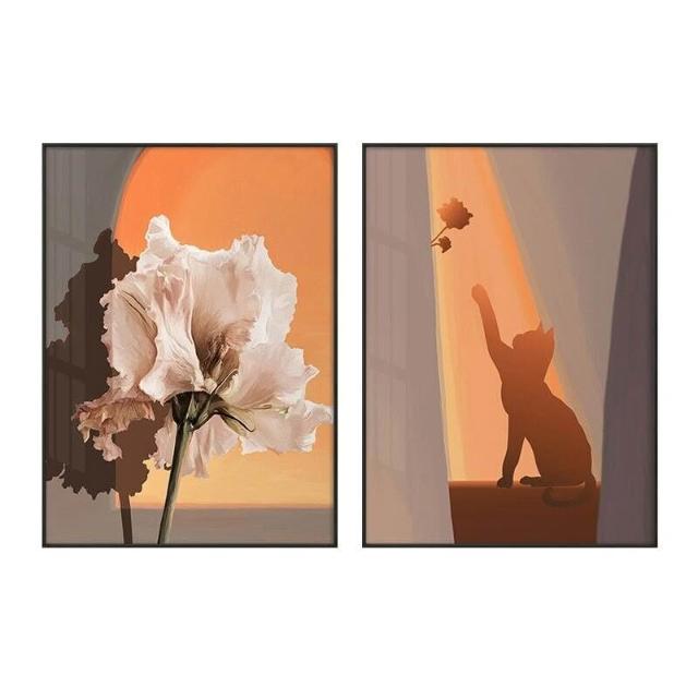 貓與少女 玫瑰花 黃昏光影 豎版大鋁合金裝飾畫內框畫無框畫掛畫擺畫現代簡約背景墻藝術裝飾框畫