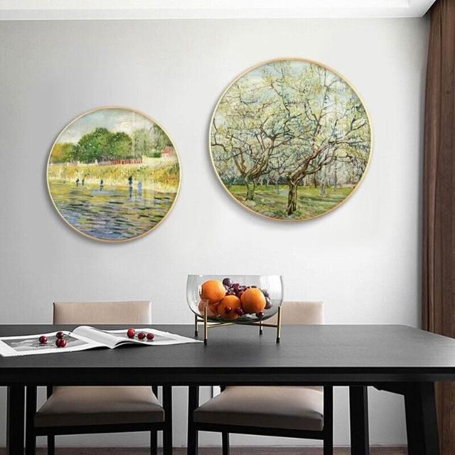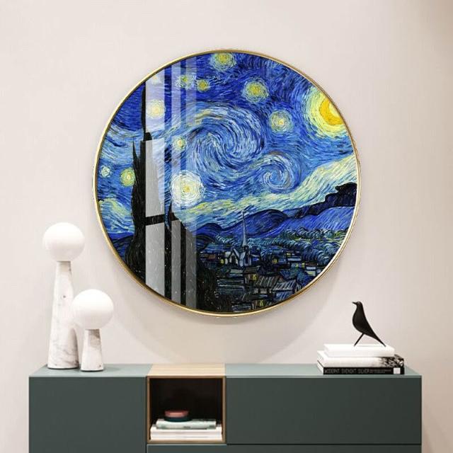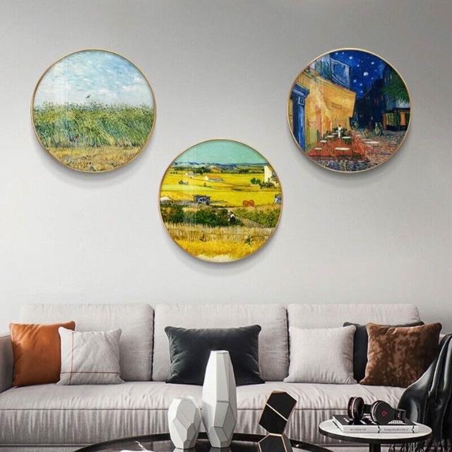 梵谷名畫衍生 豐收 星空 向日葵 大尺寸圓形定製版畫 大型圓形鋁合金框掛畫 擺畫 裝潢藝術壁畫