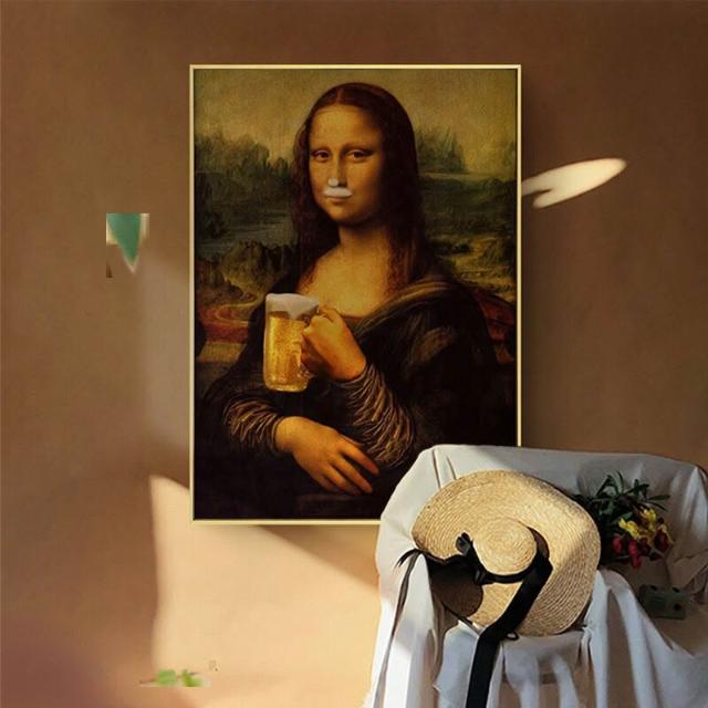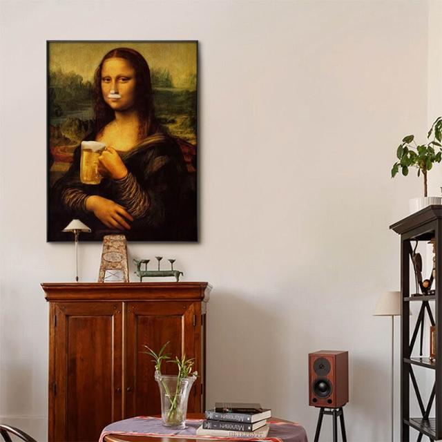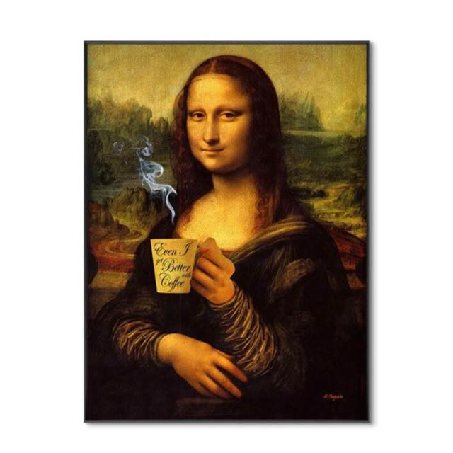 蒙娜麗莎愛咖啡 小尺寸定製畫小型鋁合金框掛畫無框畫內框畫擺畫落地畫居酒屋咖啡館裝潢藝術畫